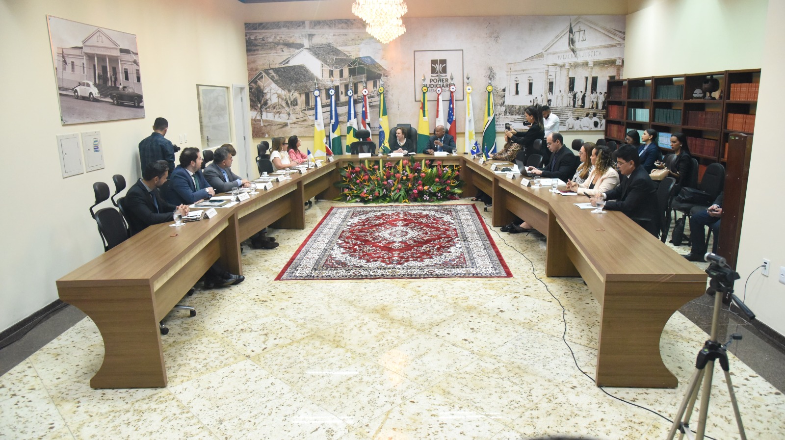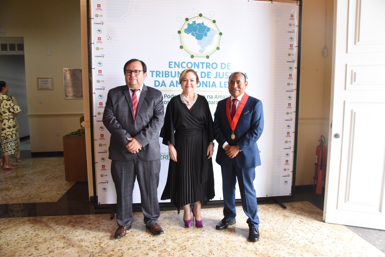 Com a temática ‘O Poder Judiciário na Amazônia: diálogos e cooperação para o bem servir’, o evento ocorre no Palácio da Justiça e reúne representantes dos tribunais dos estados do Acre, Pará, Mato Grosso, Amazonas, Tocantins e Amapá. O presidente da Corte Superior de Justiça de madre de Dios, do Peru, juiz superior Adolfo Cayra, e o presidente do Tribunal Departamental de Justiça de Pando, na Bolívia, juiz superior Jorge Sotelo, foram os convidados internacionais.