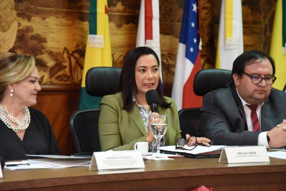 Destacando sobre colaboração entre os tribunais na identificação de desafios comuns, a busca por soluções mais eficientes e consistentes em prol dos usuários da Justiça, a presidente do Tribunal de Justiça do Estado do Acre (TJAC), desembargadora Regina Ferrari, abriu o I Encontro de Tribunais de Justiça da Amazônia Legal.