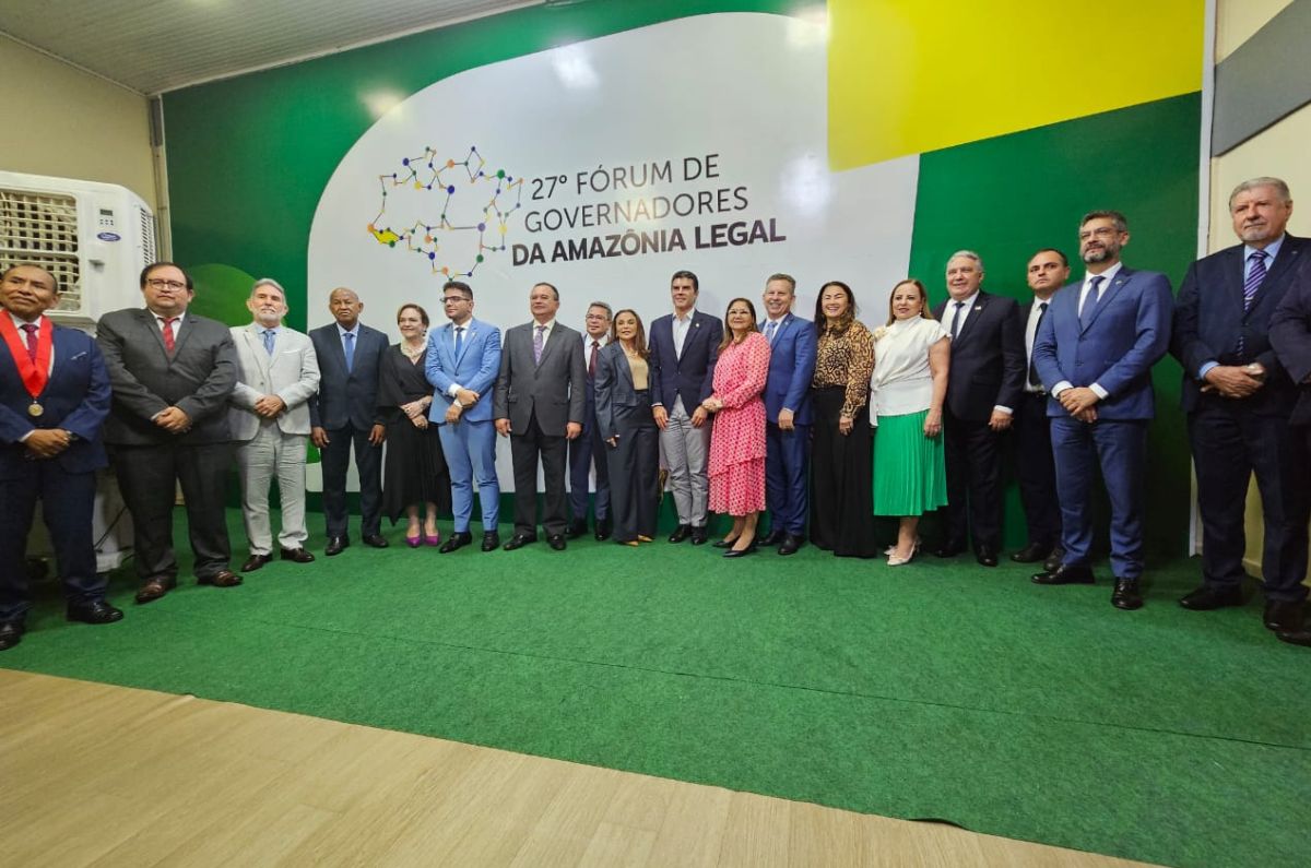 Magistrados representando os tribunais de Justiça do Acre, Pará, Mato Grosso, Amazonas, Tocantins, Amapá e da Corte Superior de Justiça de Madre de Dios, no Peru, e Tribunal Departamental de Justiça de Pando, na Bolívia, estiveram no 27º Fórum de Governadores da Amazônia Legal, nesta sexta-feira, 12