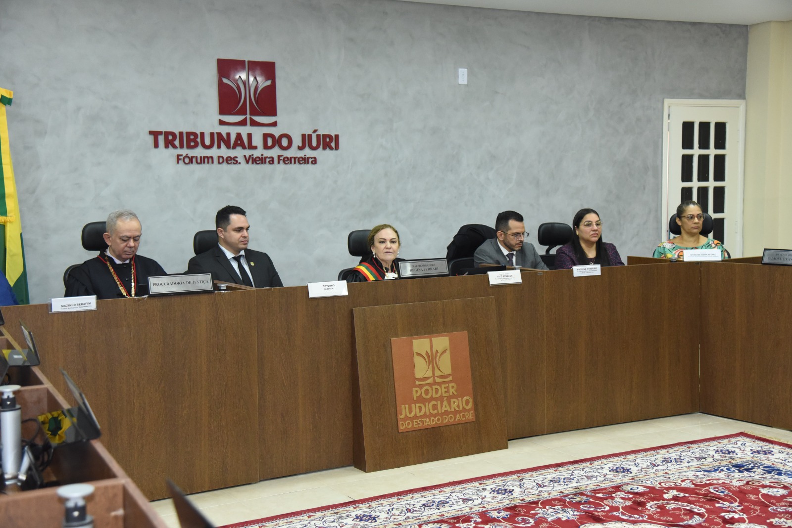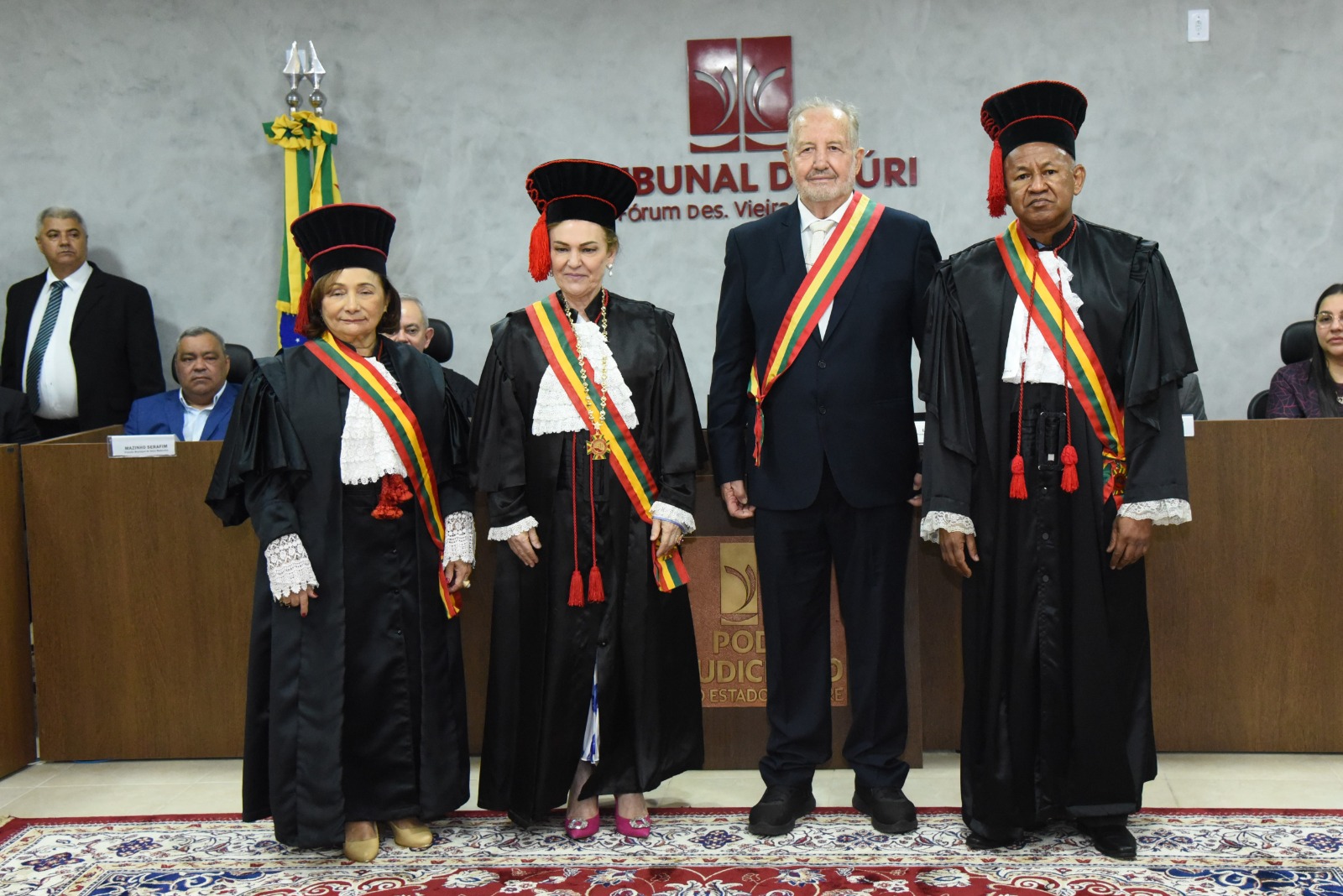 A Corte de Justiça esteve composta pela presidente do tribunal, desembargadora Regina Ferrari, o corregedor-geral da Justiça, desembargador Samoel Evangelista, a decana da Corte, Eva Evangelista, o diretor da Escola do Poder Judiciário, desembargador Elcio Mendes, além da desembargadora Waldirene Cordeiro e dos desembargadores Roberto Barros, Francisco Djalma e Nonato Maia, e de forma virtual, a desembargadora Denise Bonfim. Representando o Ministério Público Estadual, o procurador de Justiça Celso Jerônimo.