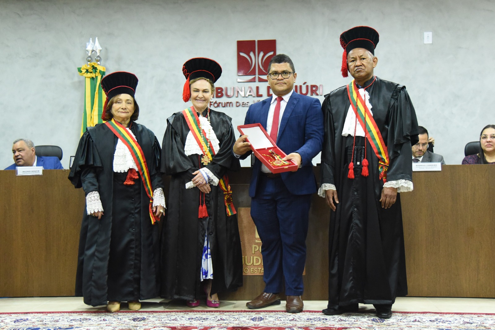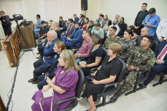 Os magistrados Caíque Cirano (diretor do Foro), Fábio Farias, Eder Viegas, Elielton Zanoli, também prestigiaram a solenidade e a sessão, junto às servidoras e servidores, e convidados.