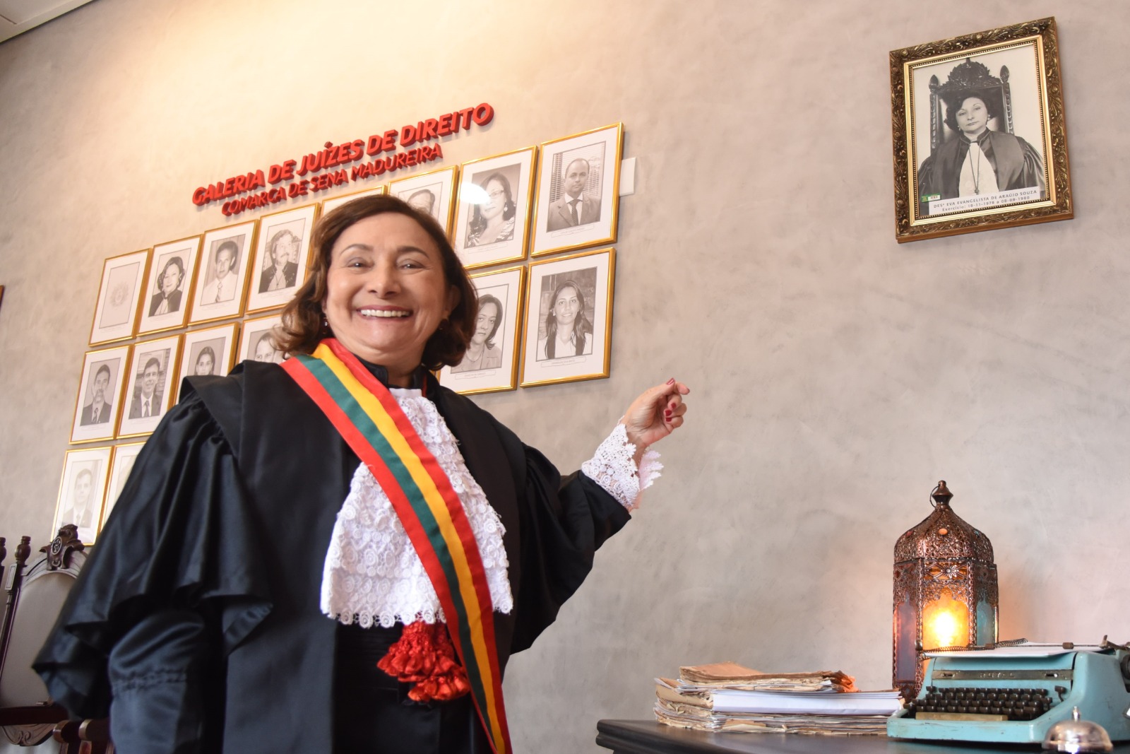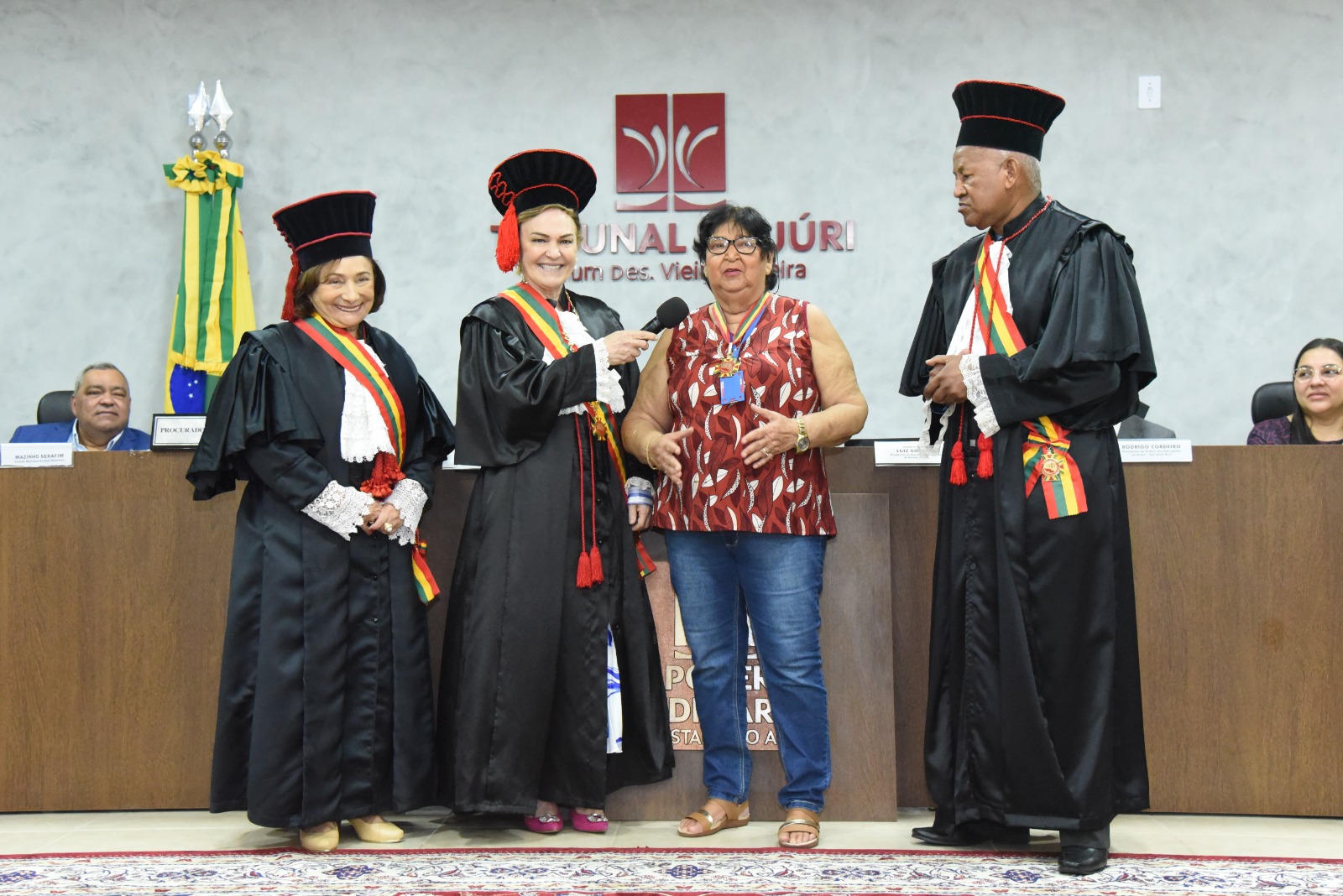 “Somos vidas e mãos entrelaçadas. Toda essa história contada hoje, ela foi um pouco de cada um. Homenageio aos juízes que aqui passaram. Como o hino de Sena Madureira fala das águas caudalosas do rio Iaco, eu quero deixar aqui esse canto de esperança e paz”, ressaltou Eva Evangelista.