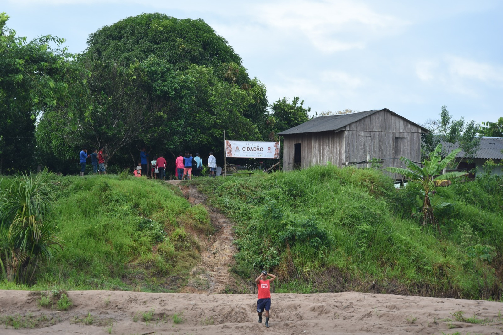 Para chegar até a localidade, a equipe de servidores do TJAC percorreu três horas de carro até Manoel Urbano, em seguida, mais três dias de barco subindo o Rio Purus.