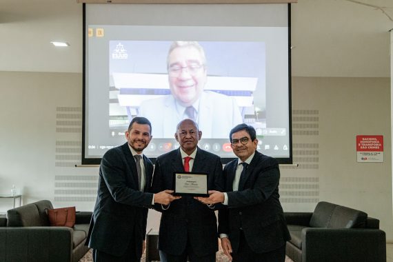 Na oportunidade o Colegiado também entregou uma homenagem ao desembargador Elcio Mendes, idealizador do Colégio de Corregedores, ante a sua contribuição para a concretização da iniciativa. O atual diretor da Escola do Poder Judiciário (Esjud), participou por videoconferência. A placa de homenagem foi recebida pelo desembargador Samoel.