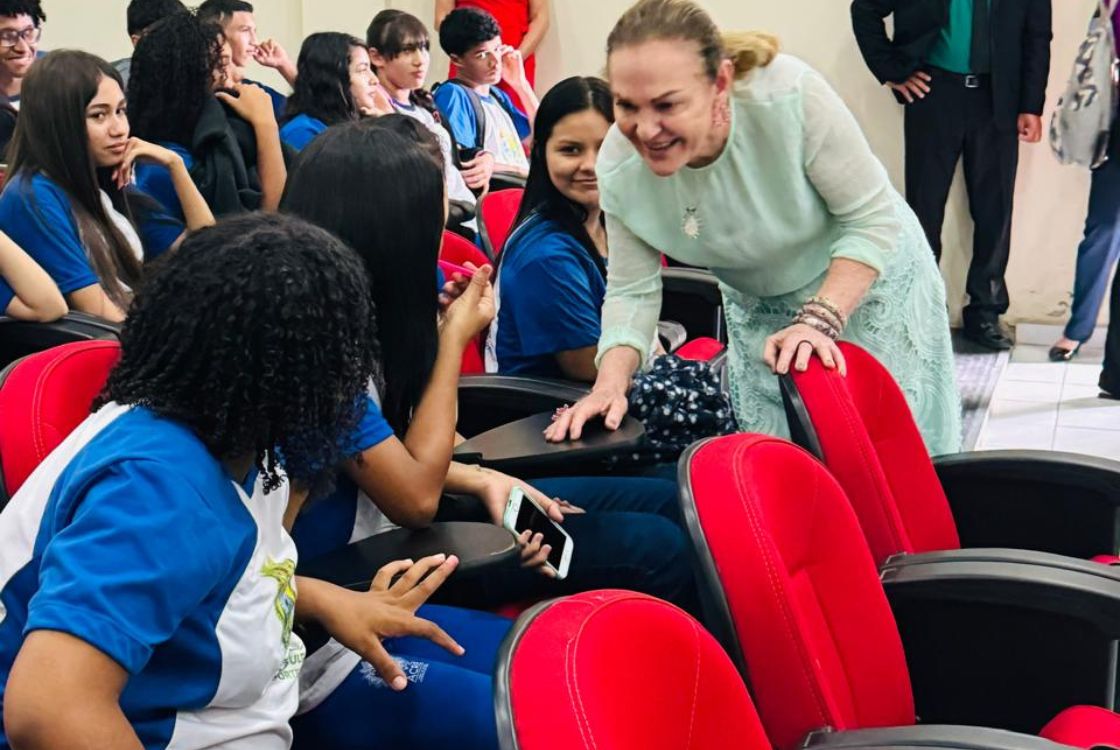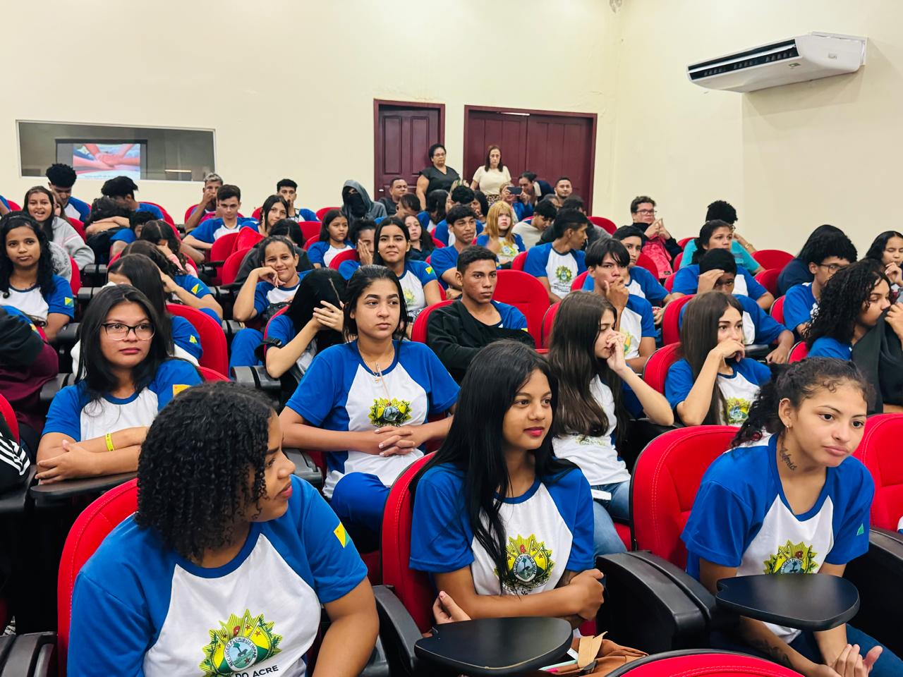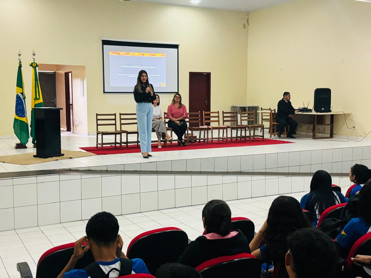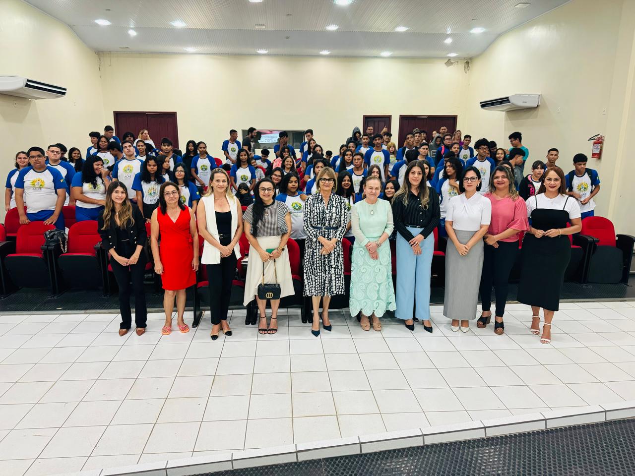 Alunas e alunos da Escola Estadual Raimunda Silva Pará, situada no conjunto habitacional Cidade do Povo, Segundo Distrito de Rio Branco, receberam na terça-feira, 30, a equipe da Coordenadoria Estadual da Mulher em Situação de Violência Doméstica e Familiar do Tribunal de Justiça do Acre (Comsiv/TJAC) para mais uma edição do programa “Conscientização pela Paz no Lar”.