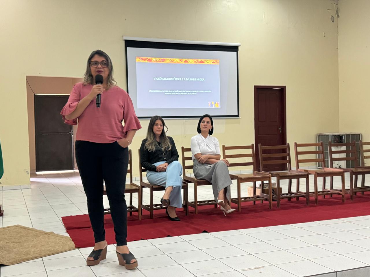 Hoje, por exemplo, o assunto foi explanado pela juíza de Direito titular da 2ª Vara de Proteção à Mulher de Rio Branco, Louise Kristina; representando o Fórum Étnico Racial, Goreth Pinto; e a advogada e membra da Escola Superior de Advocacia, Selene Fartolino.
