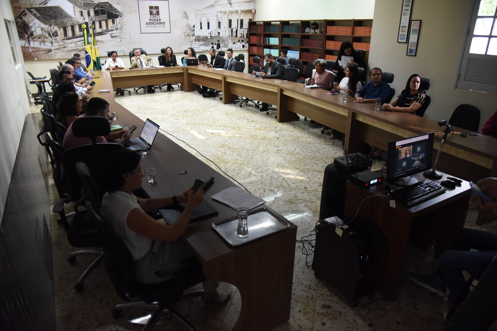 O Grupo de Monitoramento e Fiscalização do Sistema Carcerário (GMF) do Tribunal de Justiça do Acre (TJAC) realizou, nesta segunda-feira, 29, na sala de reuniões do Palácio da Justiça, a terceira reunião do Comitê de Políticas Penais, uma mobilização para contribuição da construção do Plano Nacional Pena Justa em cumprimento à Arguição de Descumprimento de Preceito Fundamental (ADPF) 347.