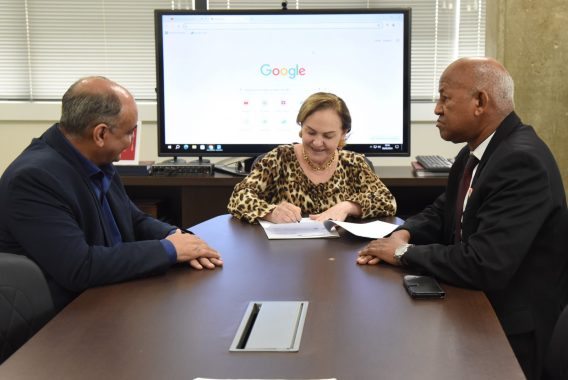 A reunião de assinatura também contou a presença da juíza de Direito auxiliar da Presidência, Zenice Cardoso, e a diretora de Logística (Dilog) do TJAC, Larissa Montilha.