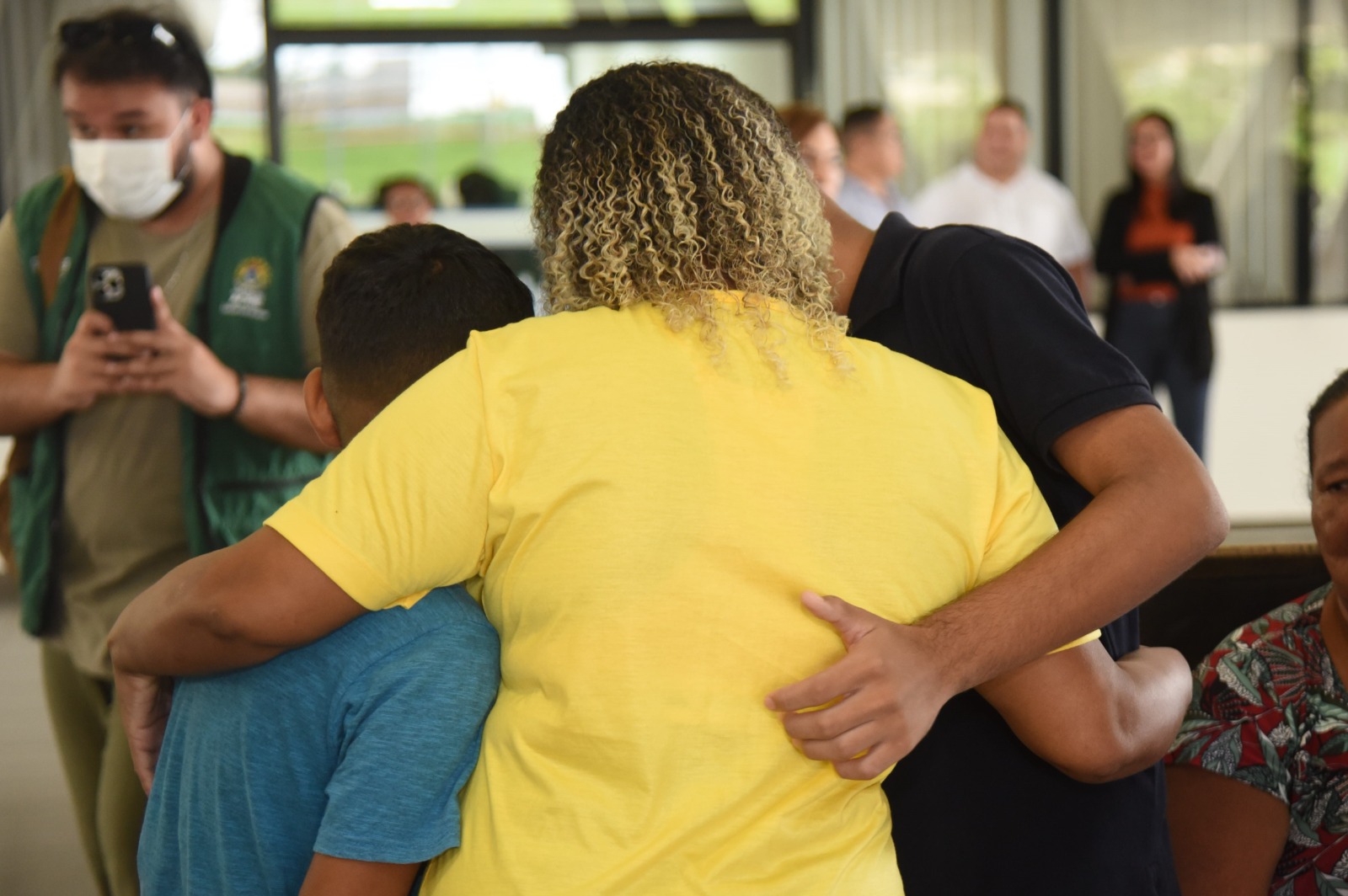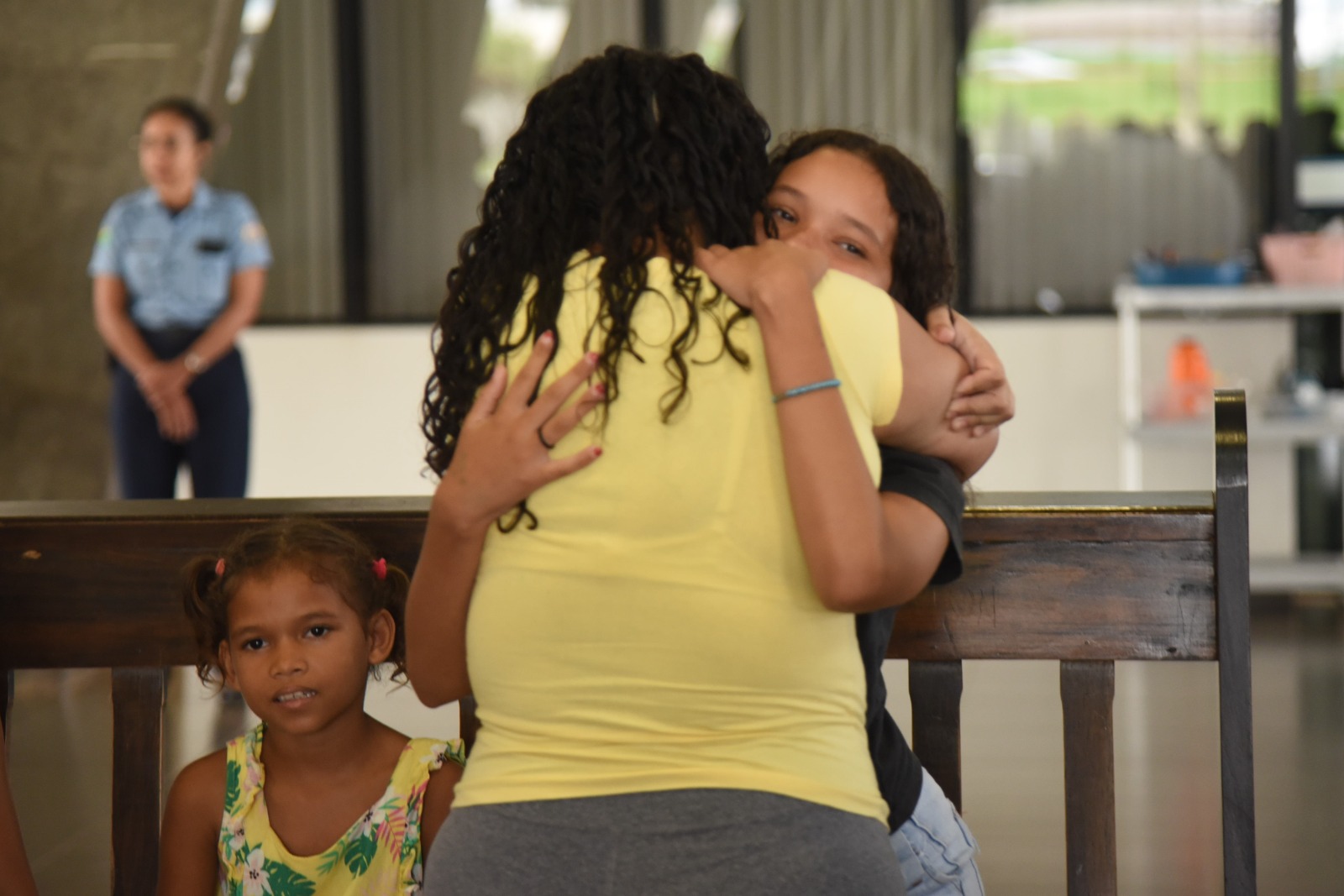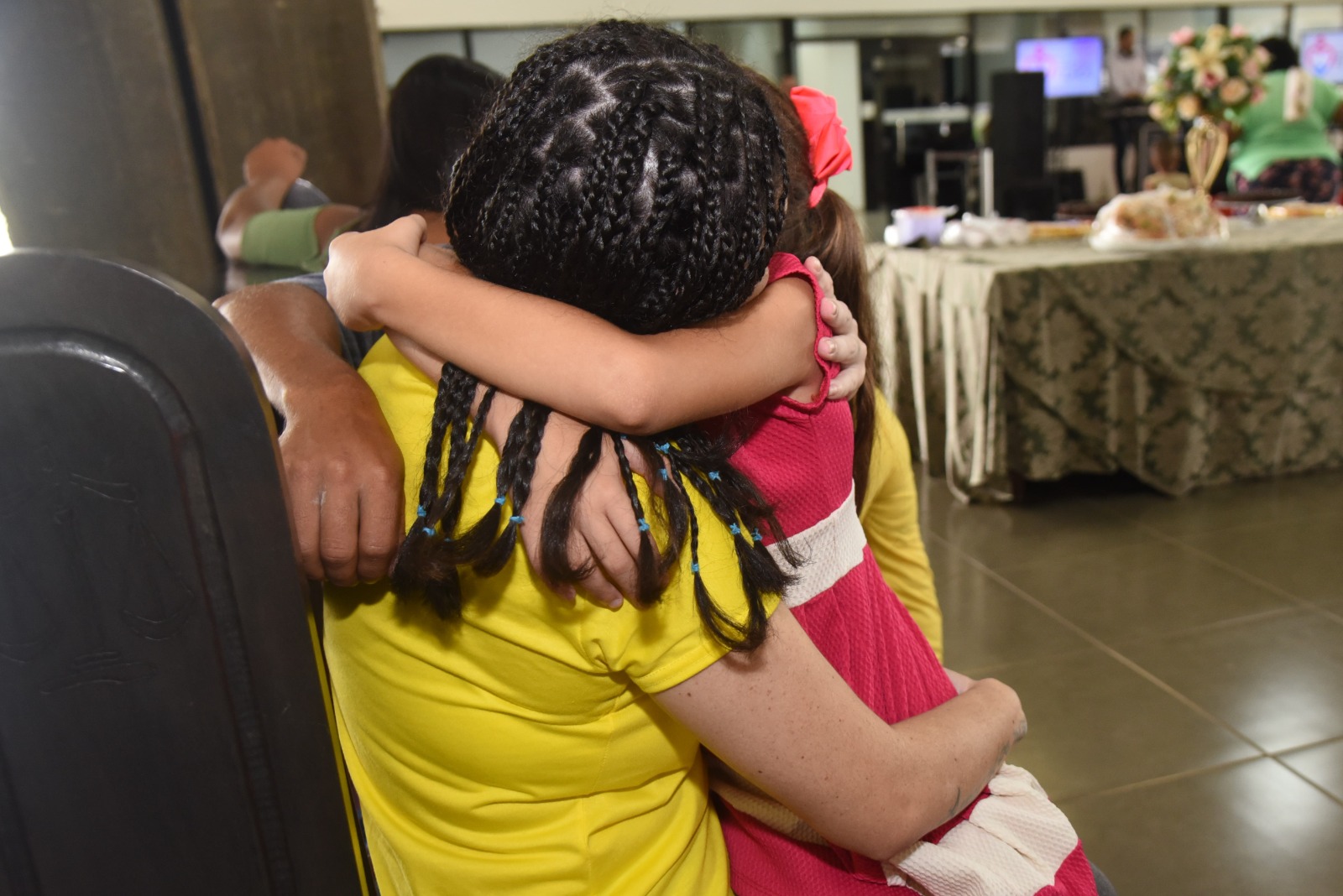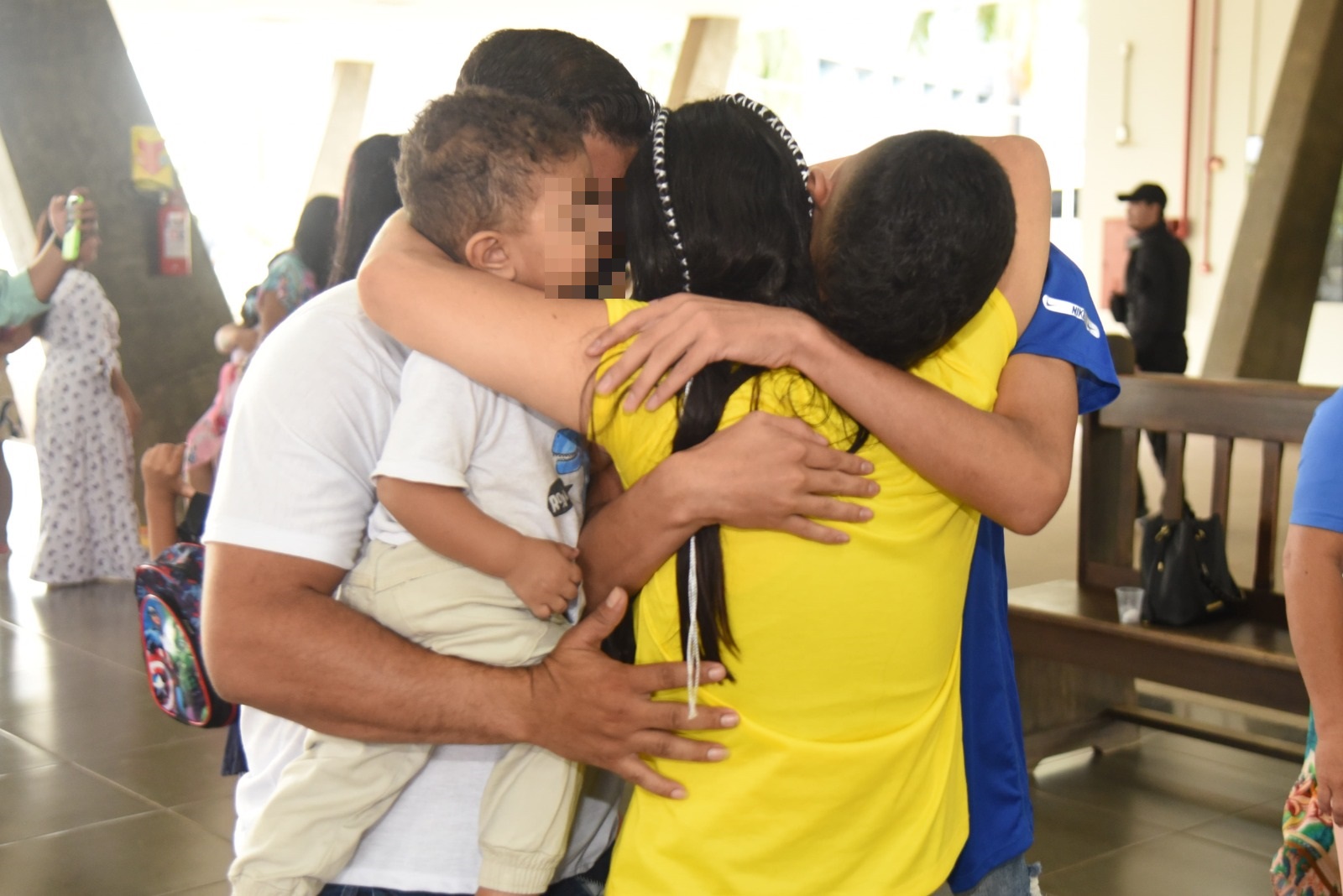 Outra mãe, que pediu para falar ao microfone, estava há quatro anos sem ver sua filha de 10 anos. Com a menina no colo, emocionada, como muitas pessoas, inclusive servidoras e servidores que presenciavam o momento, ela disse: “Hoje está sendo o dia mais feliz da minha vida. Por mais que eu não vá com ela, mas eu tô com ela nos meus braços e sei que isso não tem preço que pague. Então, eu quero agradecer vocês por tudo que vocês fazem para que esse dia seja realizado, porque eu sei que da mesma forma que nois enfrenta dificuldade, vocês enfrenta (sic) para fazer isso daqui por nós. Então, quero agradecer de coração”.