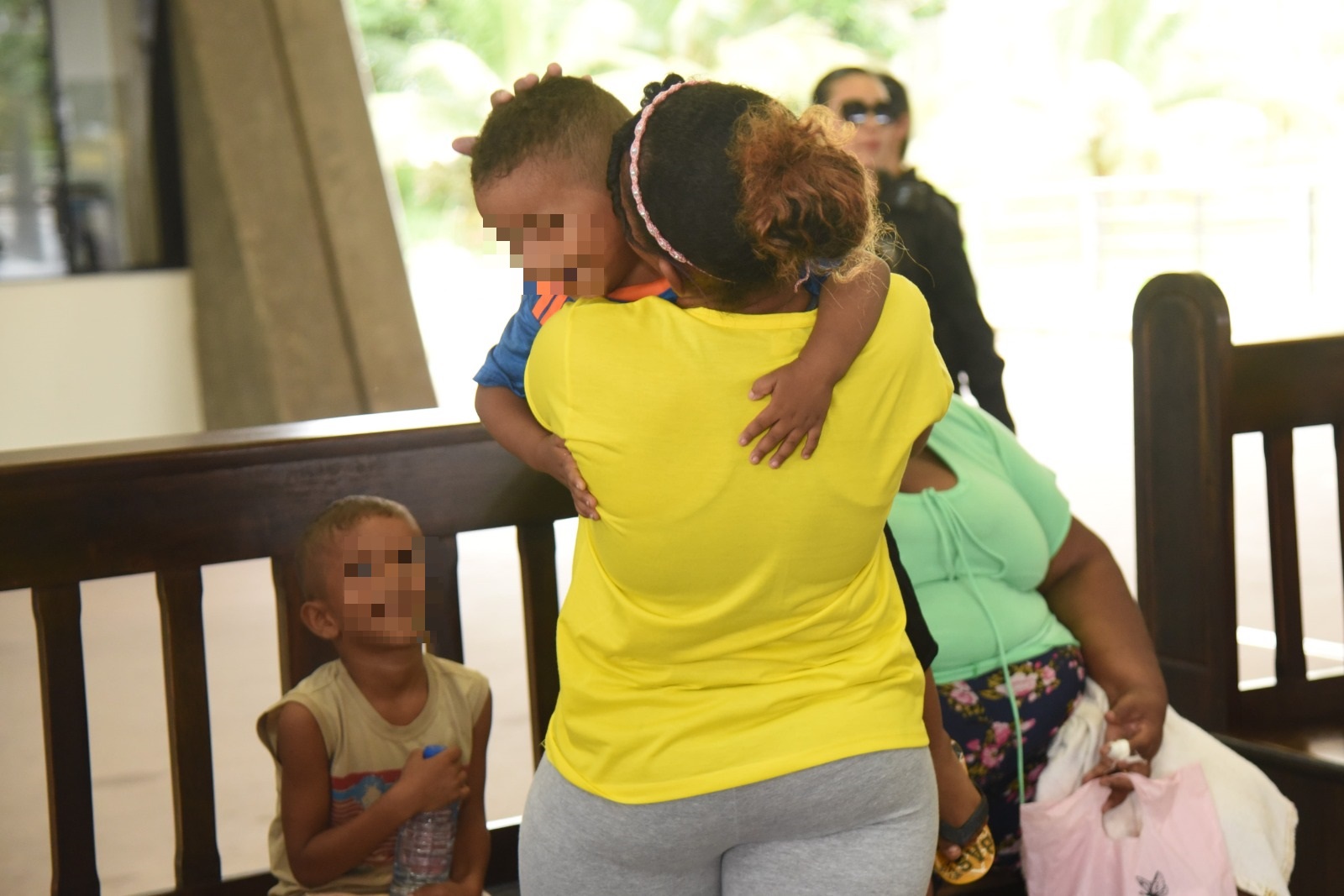A avó paterna Francisca Osório do Nascimento segurou a mão do pequeno Kauan Lucas de três anos de idade, e colocando o menino no colo, disse “ela nem é minha filha e já estou chorando”. Os dois estavam ansiosos, foram até a parte lateral do átrio do Tribunal de Justiça do Acre (TJAC) tentar enxergar entre as árvores que cobriam o estacionamento, as mulheres que desciam do ônibus do Instituto de Administração Penitenciária (Iapen). A avó e o neto vieram de Sena Madureira, com apoio da Prefeitura da cidade, nesta sexta-feira,10, para que o menino conhecesse e abraçasse a mãe, pois já tinha dois anos que a mãe e filho não se viam, porque ela está cumprindo pena privativa de liberdade e a avó cria o pequeno desde muito cedo.