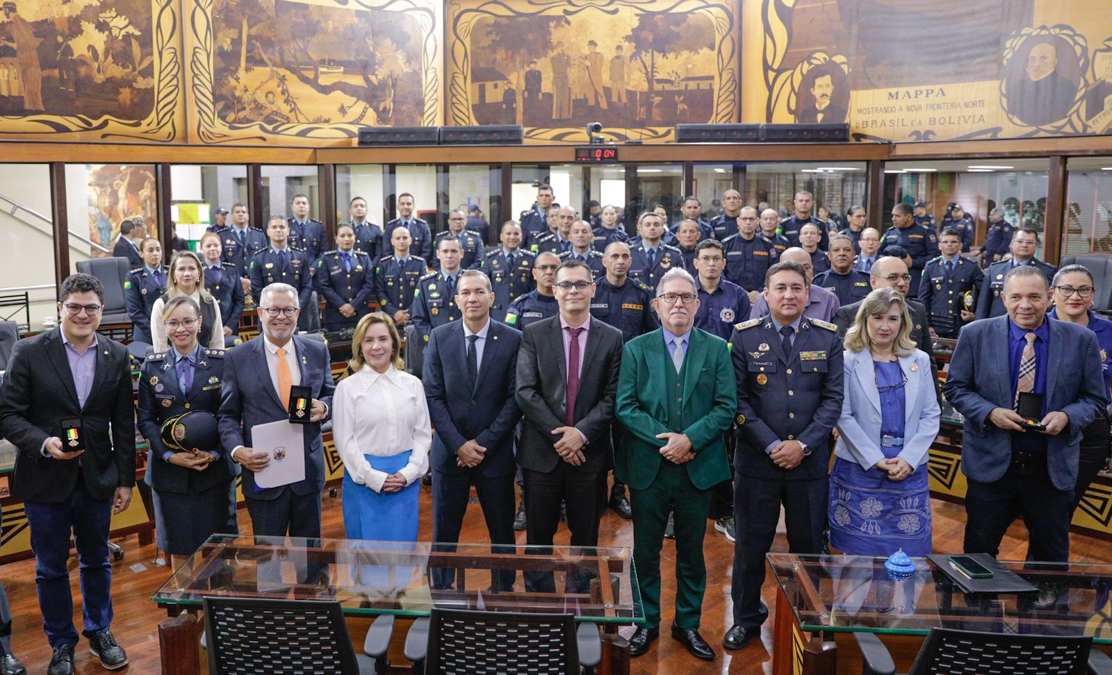 A sessão contou com a presença de diversas autoridades, incluindo parlamentares, membros da Polícia Militar acreana, representantes do Executivo, do Ministério Público e Defensoria Pública do Acre. O evento foi marcado por homenagens e discursos que ressaltaram o papel crucial da PM na manutenção da ordem pública e na proteção dos cidadãos.