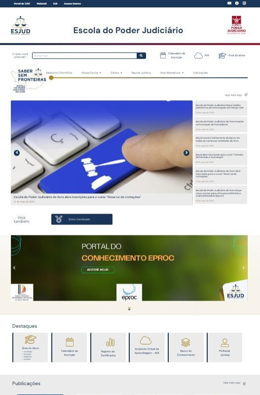 A Escola do Poder Judiciário do Acre (Esjud) firmou acordo com o Tribunal de Justiça de Santa Catarina (TJSC), por meio da Academia Judicial, para garantir acesso ao “Portal do Conhecimento Eproc”. O intuito da parceria é ampliar o conhecimento, as habilidades e as competências dos profissionais para compreenderem ainda mais a ferramenta, que será o novo sistema de virtualização e automação judicial da Justiça Estadual.