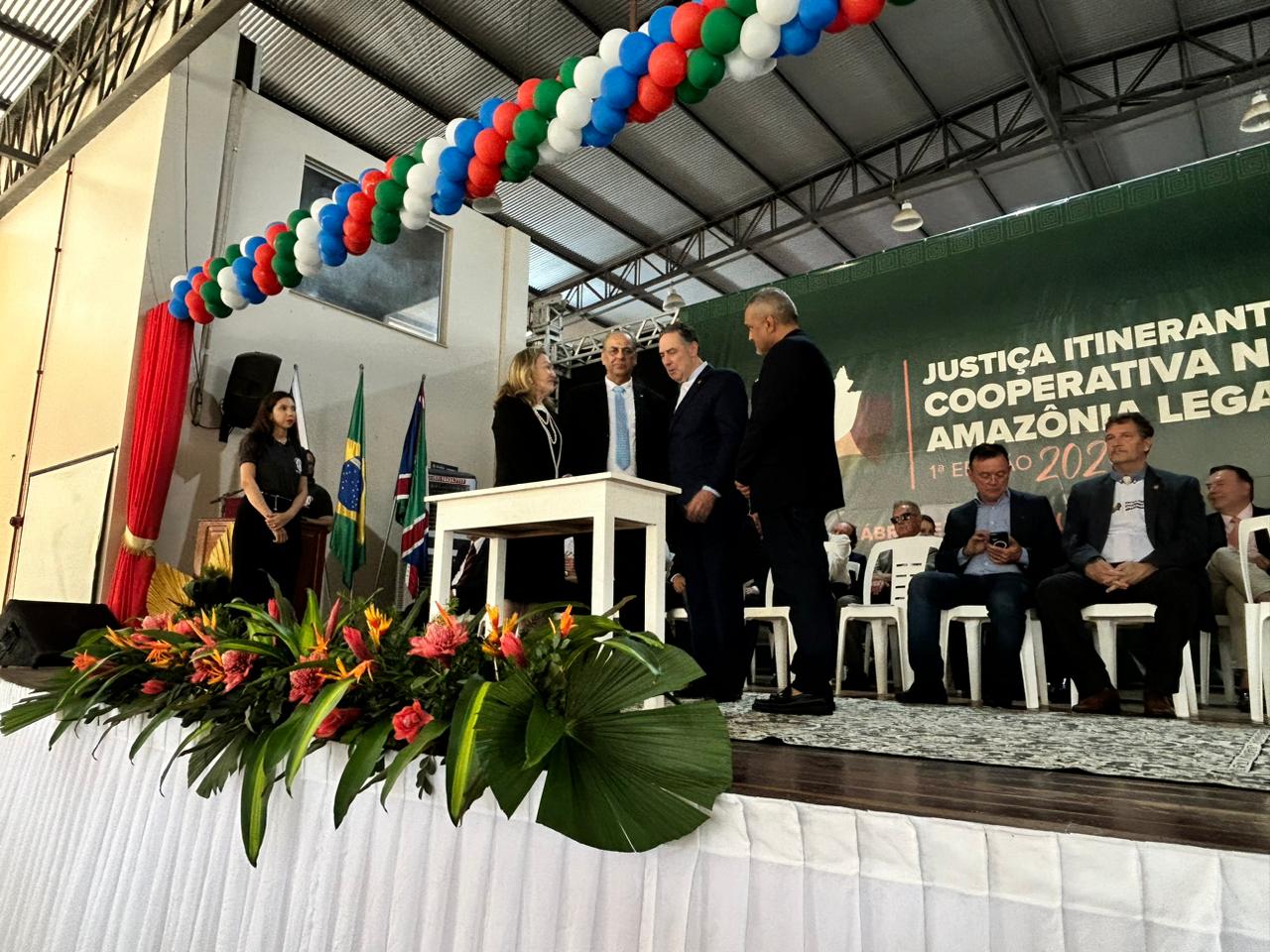 A desembargadora-presidente do Tribunal de Justiça do Acre (TJAC), Regina Ferrari, participou junto ao ministro Luís Roberto Barroso, presidente do Conselho Nacional de Justiça (CNJ), do “Programa Justiça Itinerante Cooperativa Amazônia Legal”, em Humaitá, no Amazonas, nesta terça-feira, 18. O objetivo da ação é ofertar serviços básicos de cidadania as regiões da Amazônia Legal que não têm estrutura de poder público.