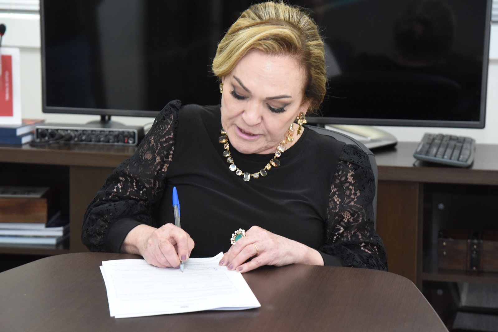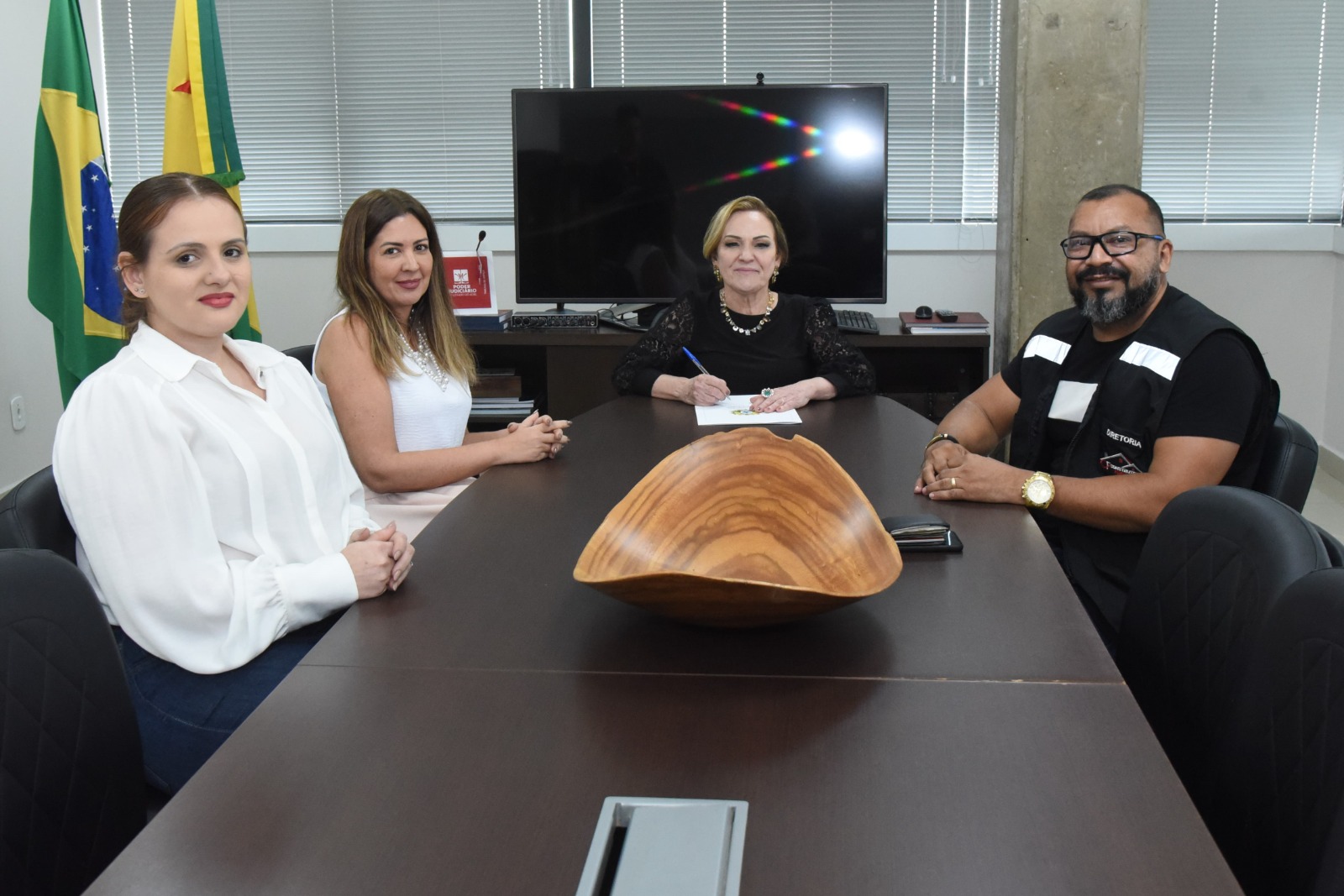 A presidente do TJAC, assinou na presença do representante da Construtora C. Freire LTDA, Clealdo Soares, e da diretora de logística (Dilog) do TJAC, Larissa Montilha, na tarde desta sexta-feira, 14, a ordem de serviço para a execução dos serviços de reforma e adequação do prédio que abriga a Comarca de Plácido de Castro, com entrega prevista para 120 dias.