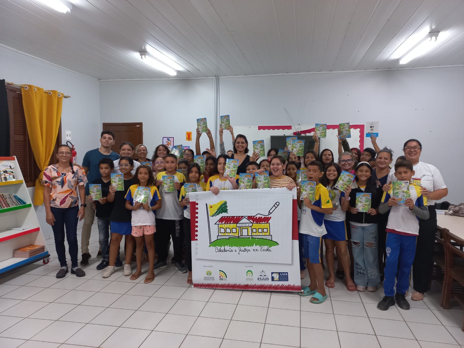 As magistradas e magistrados do TJAC, durante o mês de maio, foram até as escolas de 5° ano do ensino fundamental, da zona urbana de Rio Branco, para compartilhar conhecimento com alunas e alunos entre 9 e 11 anos.