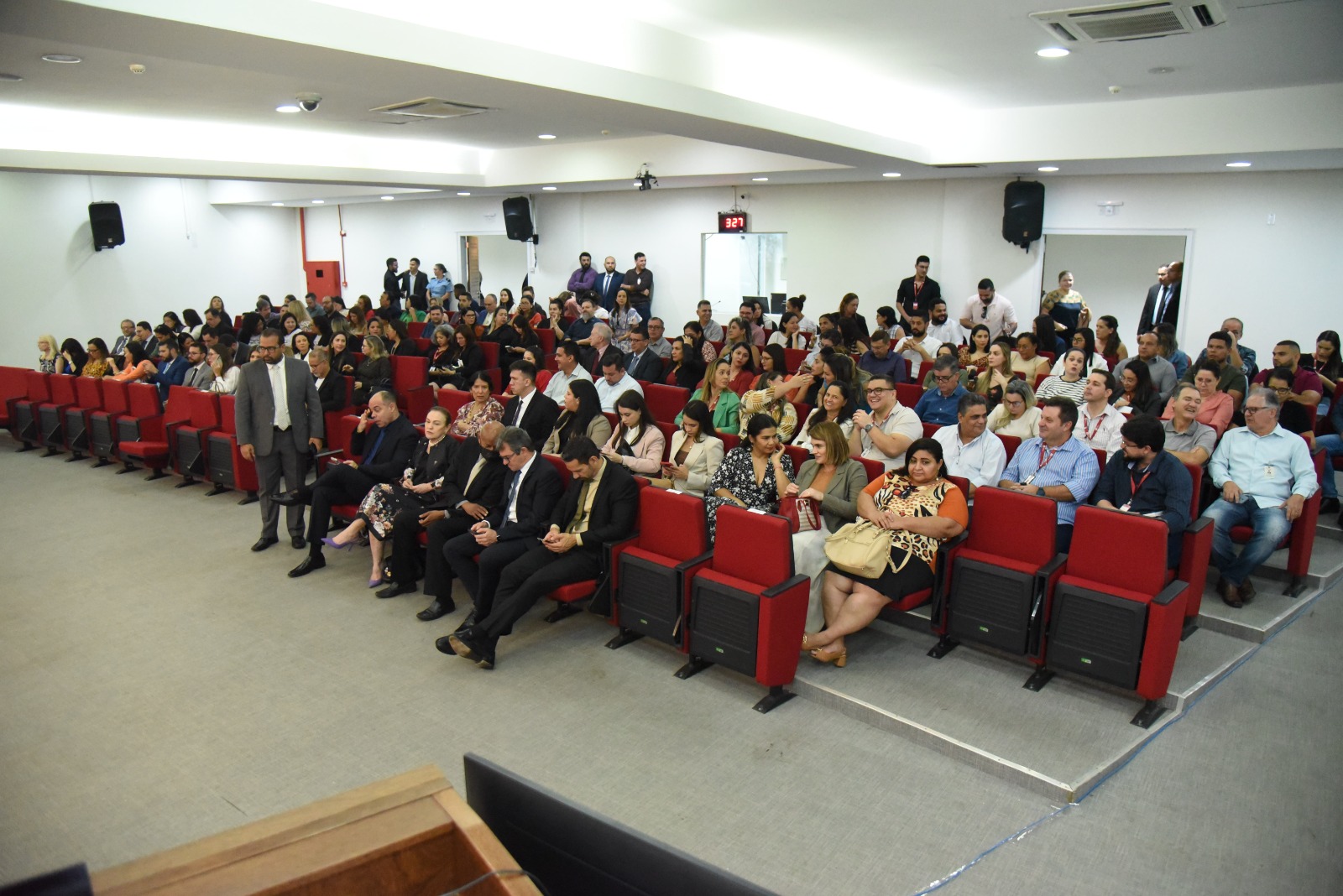 O plenário do Tribunal Pleno estava completo nesta terça-feira, 11. As desembargadoras e desembargadores não se encontravam em seus locais de hábito, também estavam assentados na plateia. Além dos telões nas paredes, havia outros três grandes televisores ao centro, esses exibiam outras dezenas de expectadores conectados por videoconferência. Em alguns instantes, ao iniciar a palestra “União e Compromisso: como bem servir ao ideal de Justiça” mais uma centena de pessoas se somaram para assistirem Samer Agi ao vivo.