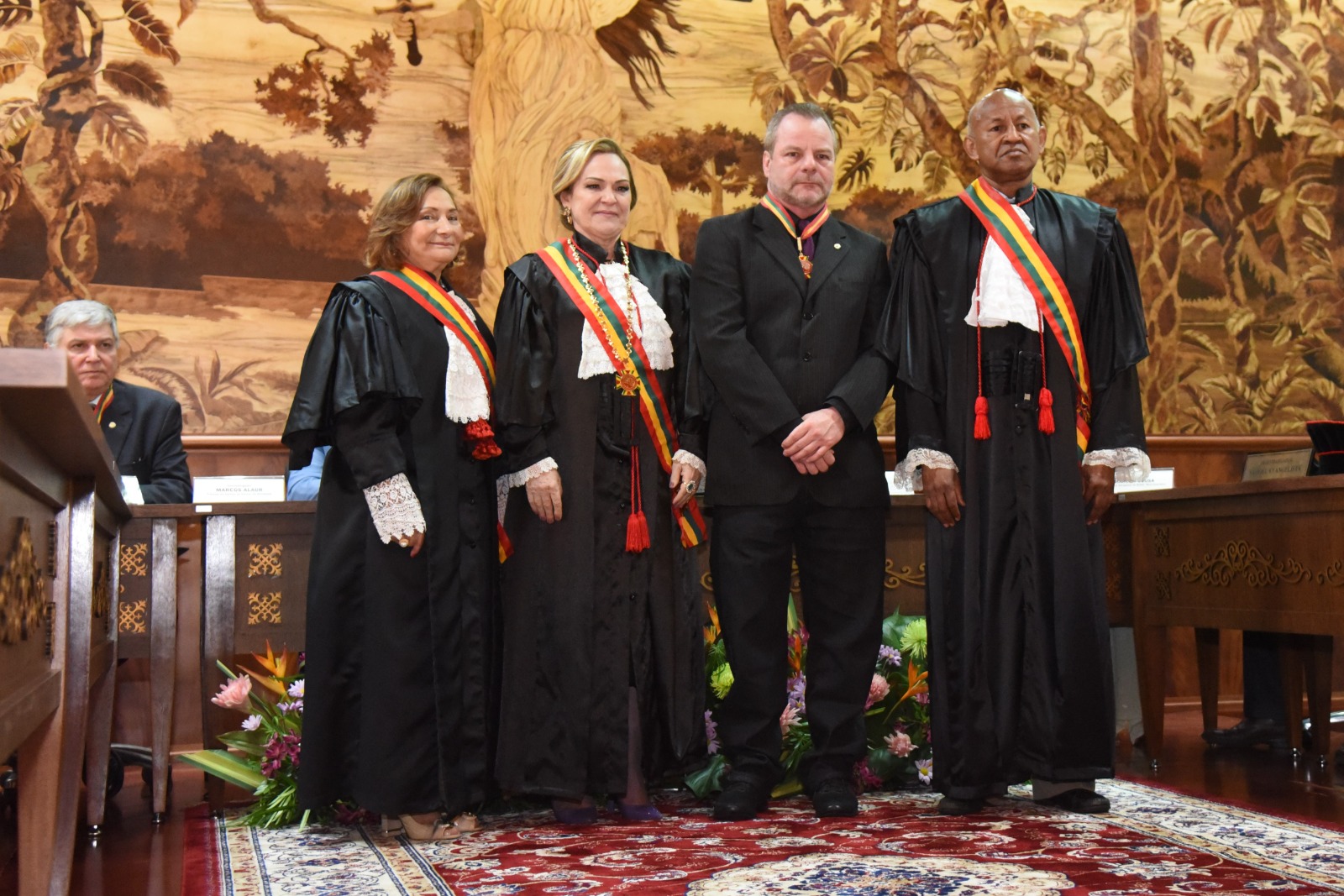 - No grau Grande Oficial, desembargador Marcos Alaor, do TJRO: “É uma homenagem que levo para meu coração. É muito bom poder estar com amigos e falar com amigos. Tenho muitos amigos no Acre. O Poder Judiciário do Acre desde Galvez até hoje faz história”;