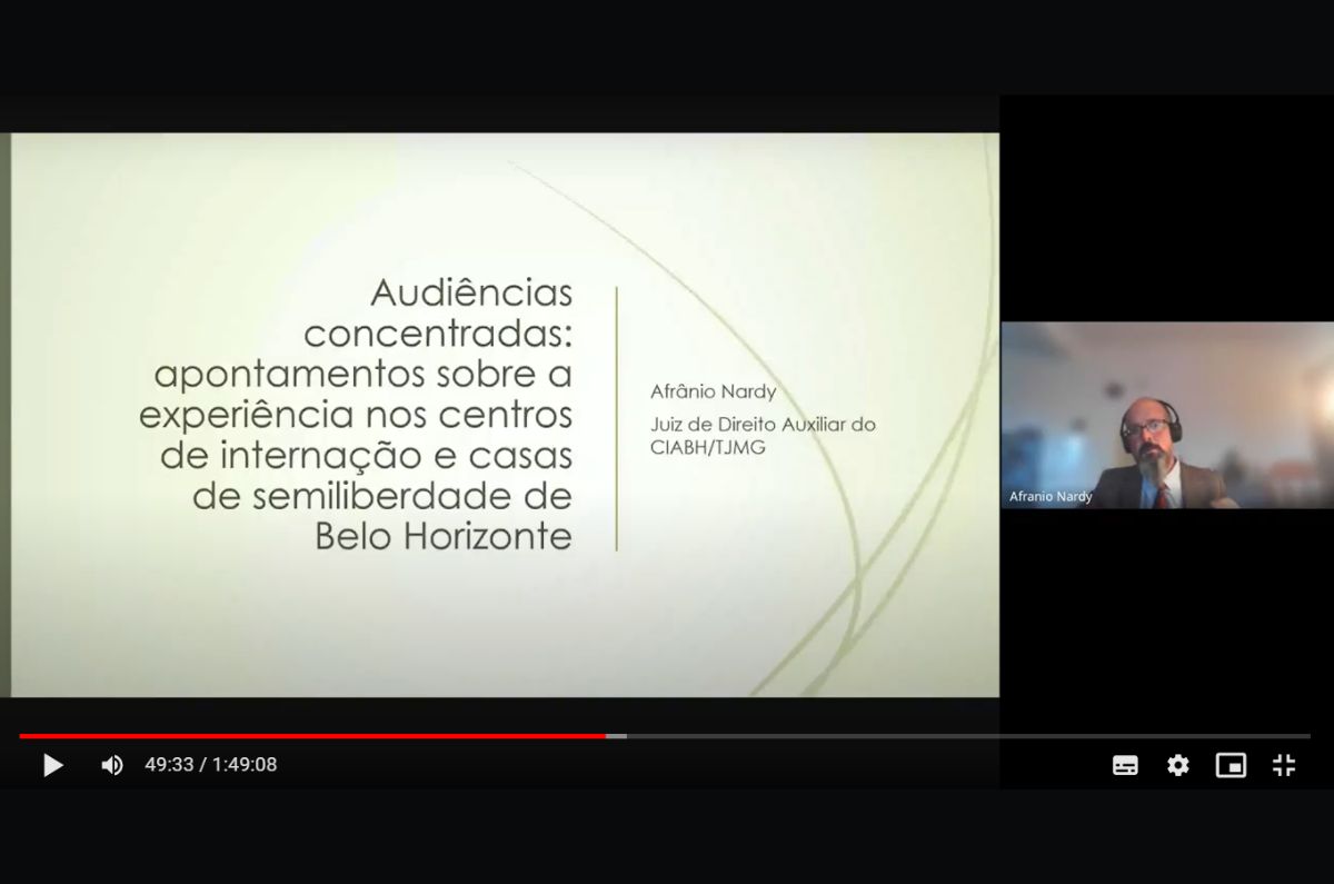 Em sua apresentação, o juiz Afrânio falou sobre a importância de considerar as orientações do Conselho Nacional de Justiça para a partir dos contextos e realidades regionais, serem elaboradas a metodologia dessas audiências. “Não existe uma receita para fazer audiência concentrada e devemos ajustá-la a realidade concreta vivenciada no exercício da jurisdição juvenil por cada juiz e comarca. Mas, existem alguns pontos focais que o CNJ nos traz através do manual e da recomendação que, no meu caso, foram fundamentais para desenvolvermos uma metodologia”, comentou Nardy.