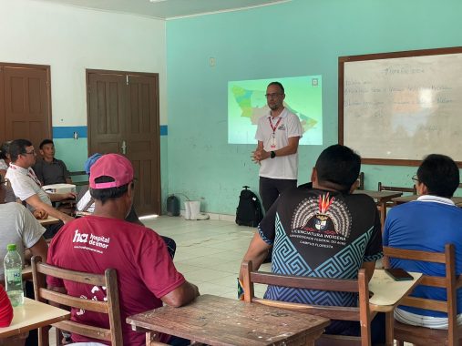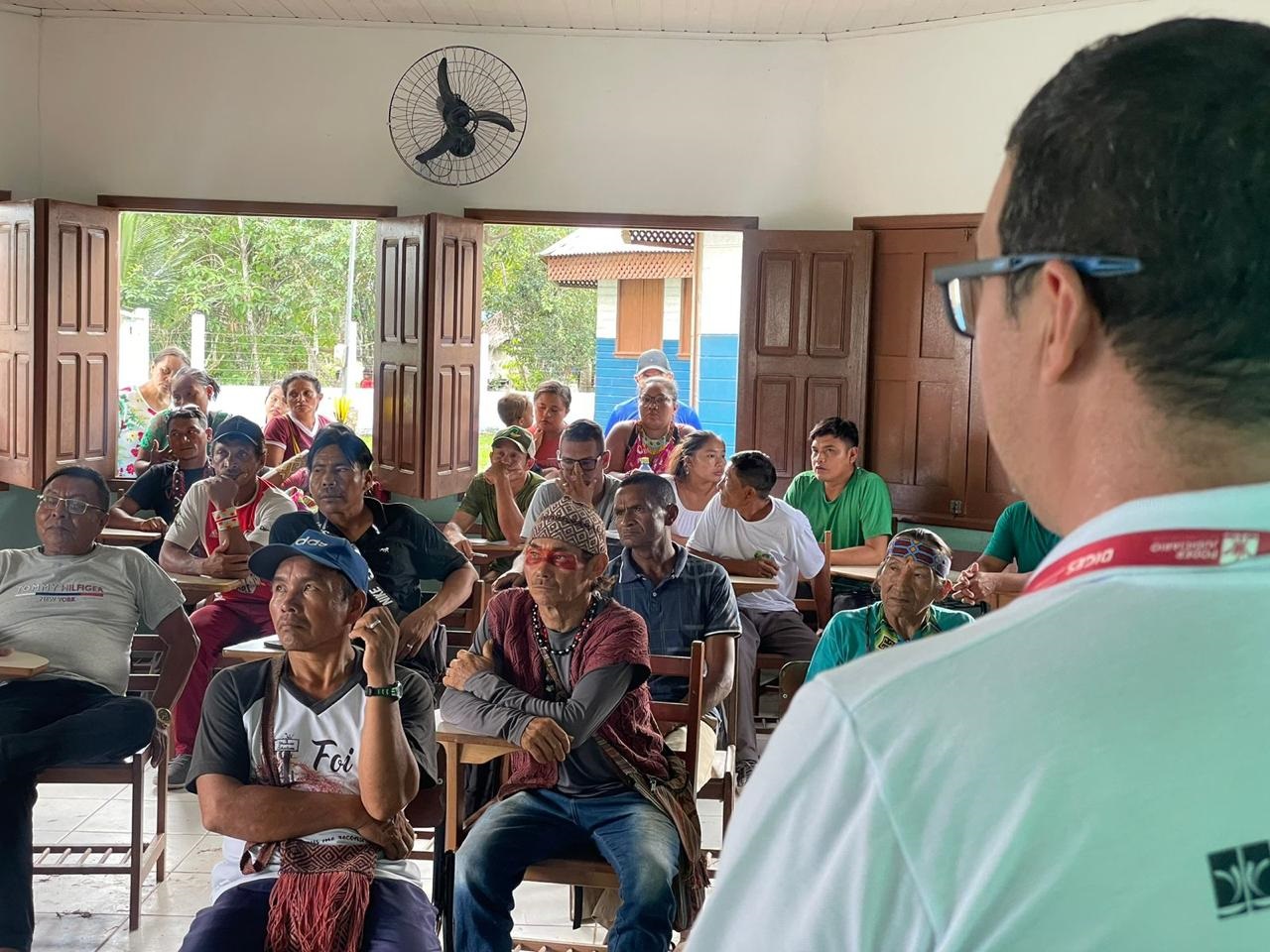A prospecção do PIDJus no Caucho se iniciou em setembro de 2023. Posterior ao diálogo com a SEE, iniciou-se a articulação com as lideranças para a apresentação do projeto. A iniciativa foi bem acolhida pelo cacique Antônio Kaxinawa.