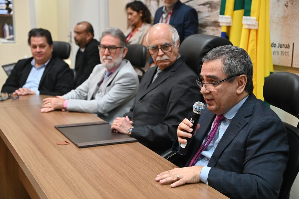 O diretor da Escola fez uma série de agradecimentos, incluindo ao médico Fernando, aos profissionais da Central de Processamento Eletrônico (Cepre) do Tribunal de Justiça do Acre (TJAC) e, em especial, à equipe da Esjud, pela ampla participação e resultados expressivos alcançados na atual gestão. São mais de 190 ações educacionais, mais de cinco mil certificações e uma carga horária de 2,800 mil horas-aula. “A gratidão é o pulsar do coração”, finalizou, ao demonstrar contentamento pelo evento.