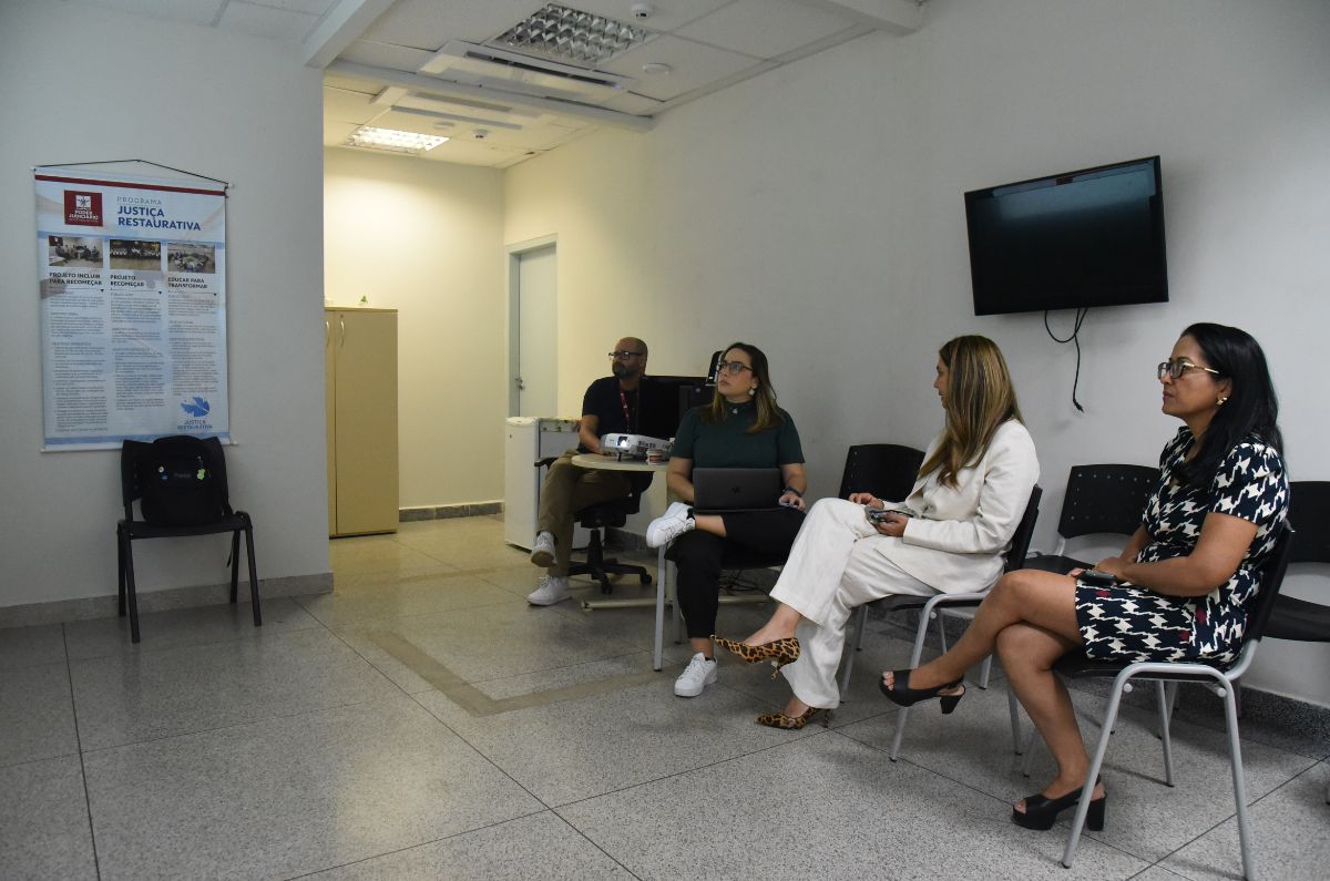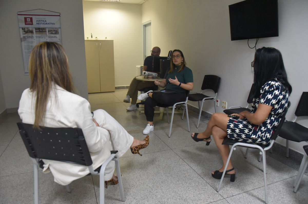 O diálogo aconteceu no do Centro de Justiça Restaurativa (Cejures), no Fórum Criminal em Rio Branco, com a consultora da Senappen, Júlia Poletine, a juíza de Direito Andréa Brito, coordenadora do Núcleo Permanente de Justiça Restaurativa (NUPJR), e a equipe técnica do Cejures, o pedagogo Fredson Pinheiro e a assistente social Mirlene Thaumaturgo.