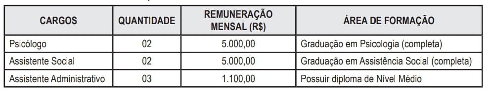 Confira o número de vagas e a remuneração mensal: