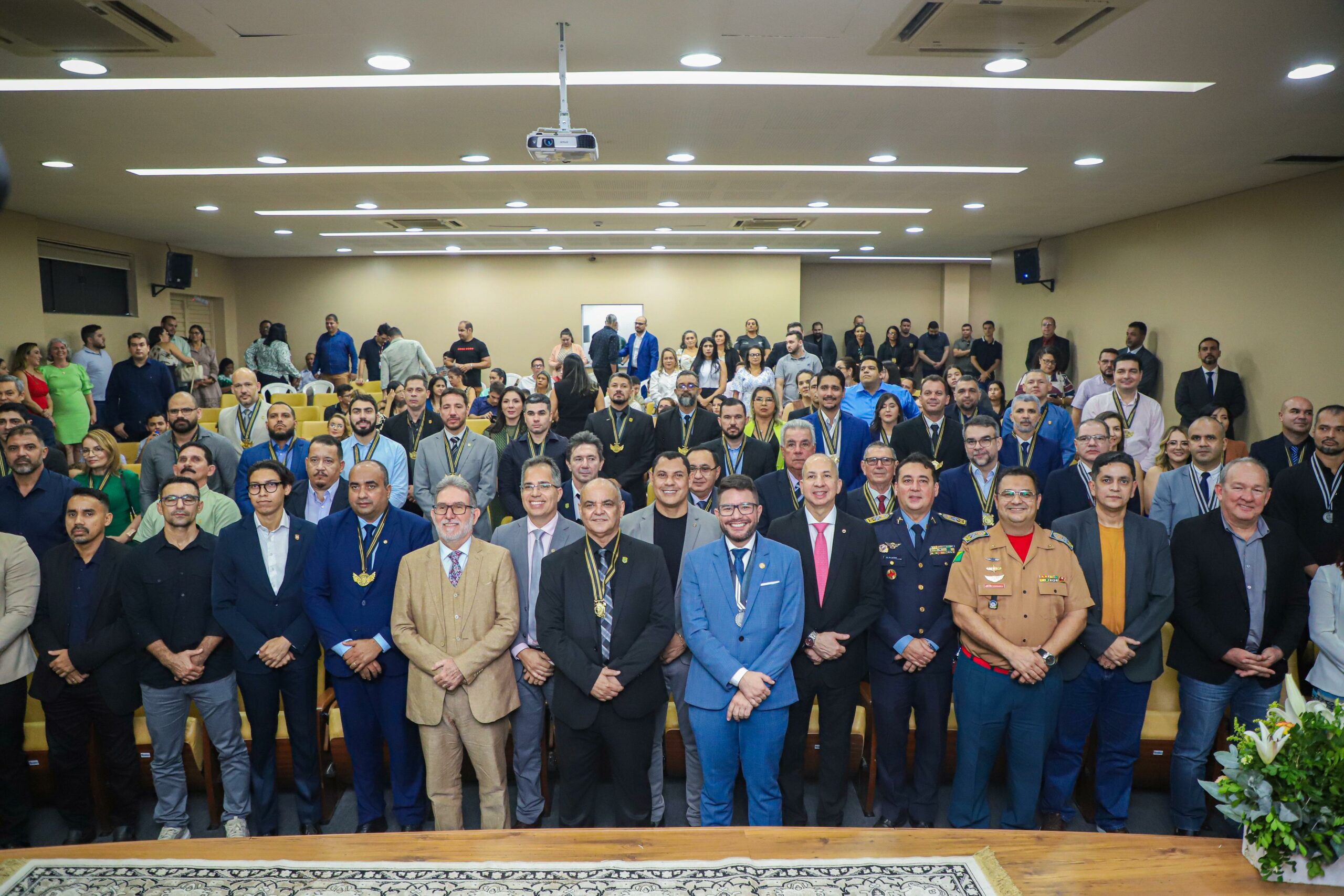 A cerimônia também contou com homenagens ao governador do Estado, Gladson Cameli, que recebeu a Medalha do Mérito Institucional, e à ex-deputada estadual Juliana Rodrigues, agraciada com a Medalha do Relevante Serviço Prestado. Além disso, policiais civis foram condecorados com as medalhas de Mérito Policial, Importância Funcional, Mérito Correcional e a de Tempo de Serviço Luis Galvez.
