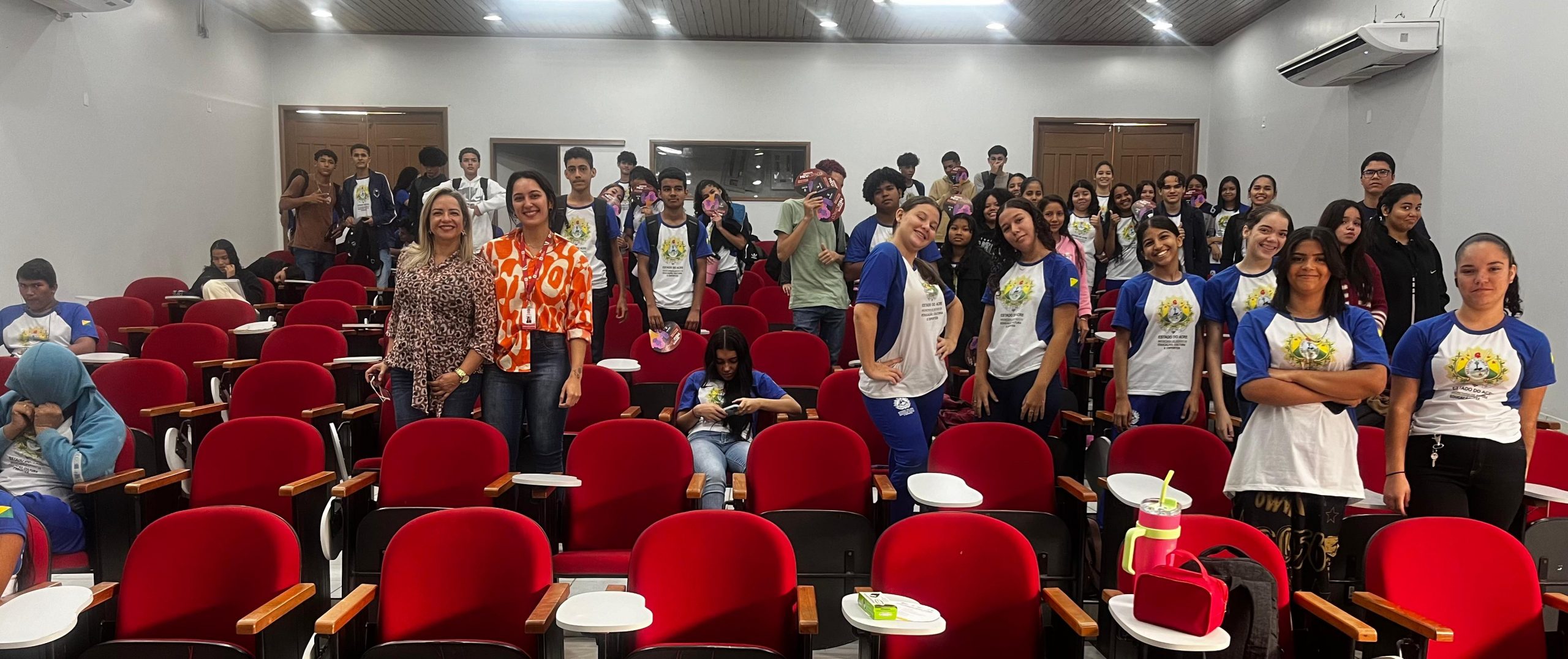 Nesta quarta-feira, 28, o Tribunal de Justiça do Acre (TJAC) promoveu palestras para cinco turmas do 1º Ano do Ensino Médio no auditório da Escola Estadual Boa União, localizada no bairro Sobral da capital acreana. A iniciativa integra a programação da campanha Agosto Lilás, que visa conscientizar e combater a violência contra a mulher.