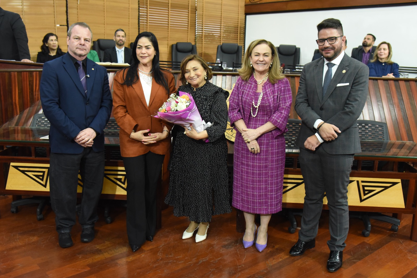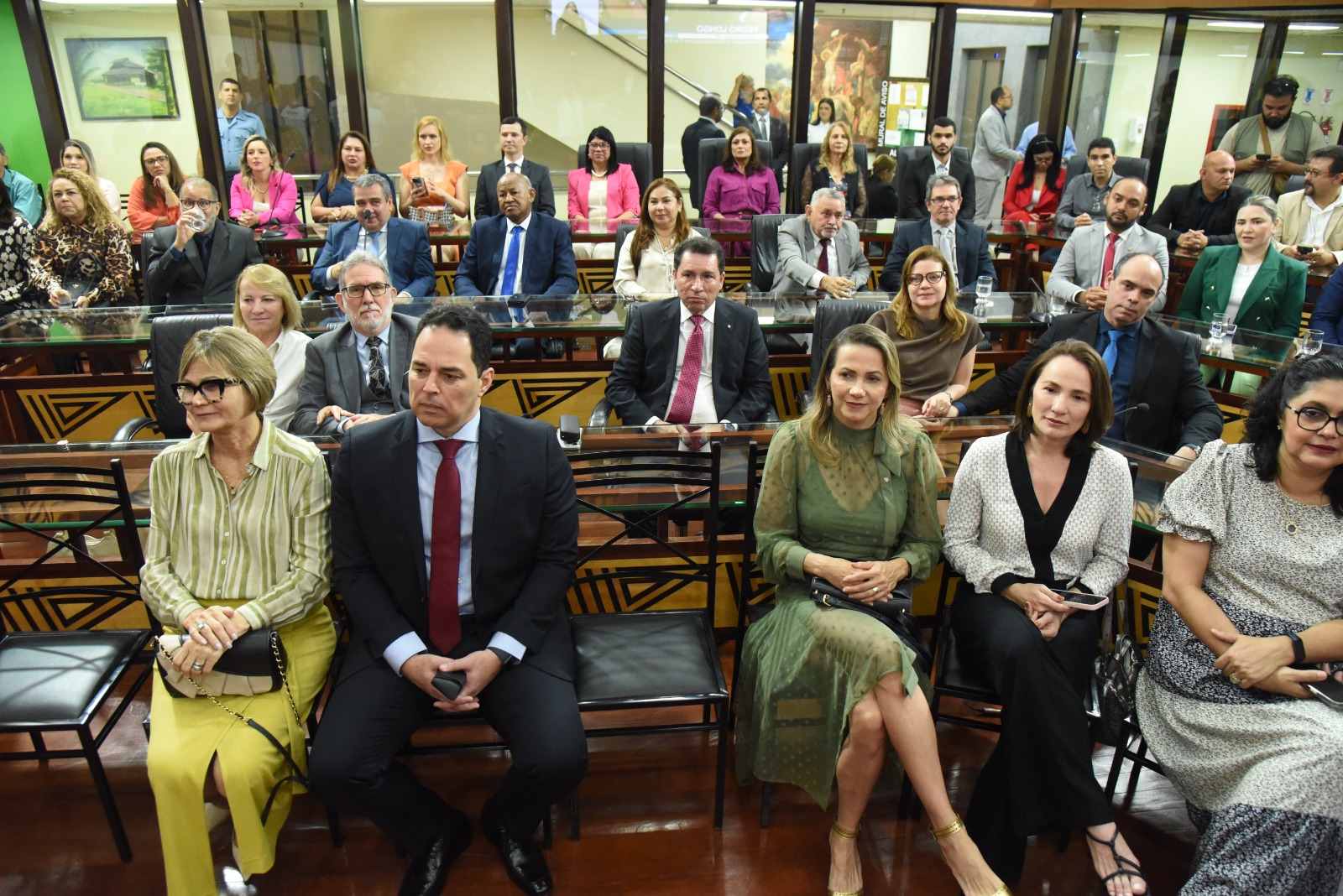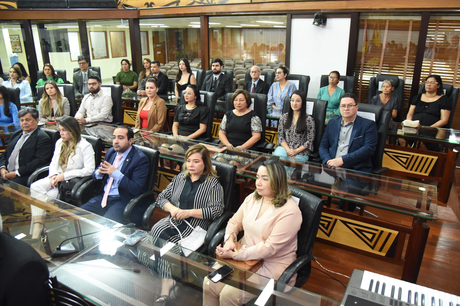 Além dos deputados da Casa do Povo, também se fizeram presentes ao ato a presidente do TJAC, desembargadora Regina Ferrari; o governador Gladson Cameli; a defensora-geral da Defensoria Pública Estadual (DPE), Simone Santiago; a procuradora-geral adjunta do Ministério Público do Acre (MPAC), Rita de Cássia; bem como a vice-presidente da Ordem dos Advogados do Brasil Seccional Acre, Socorro Rodrigues.