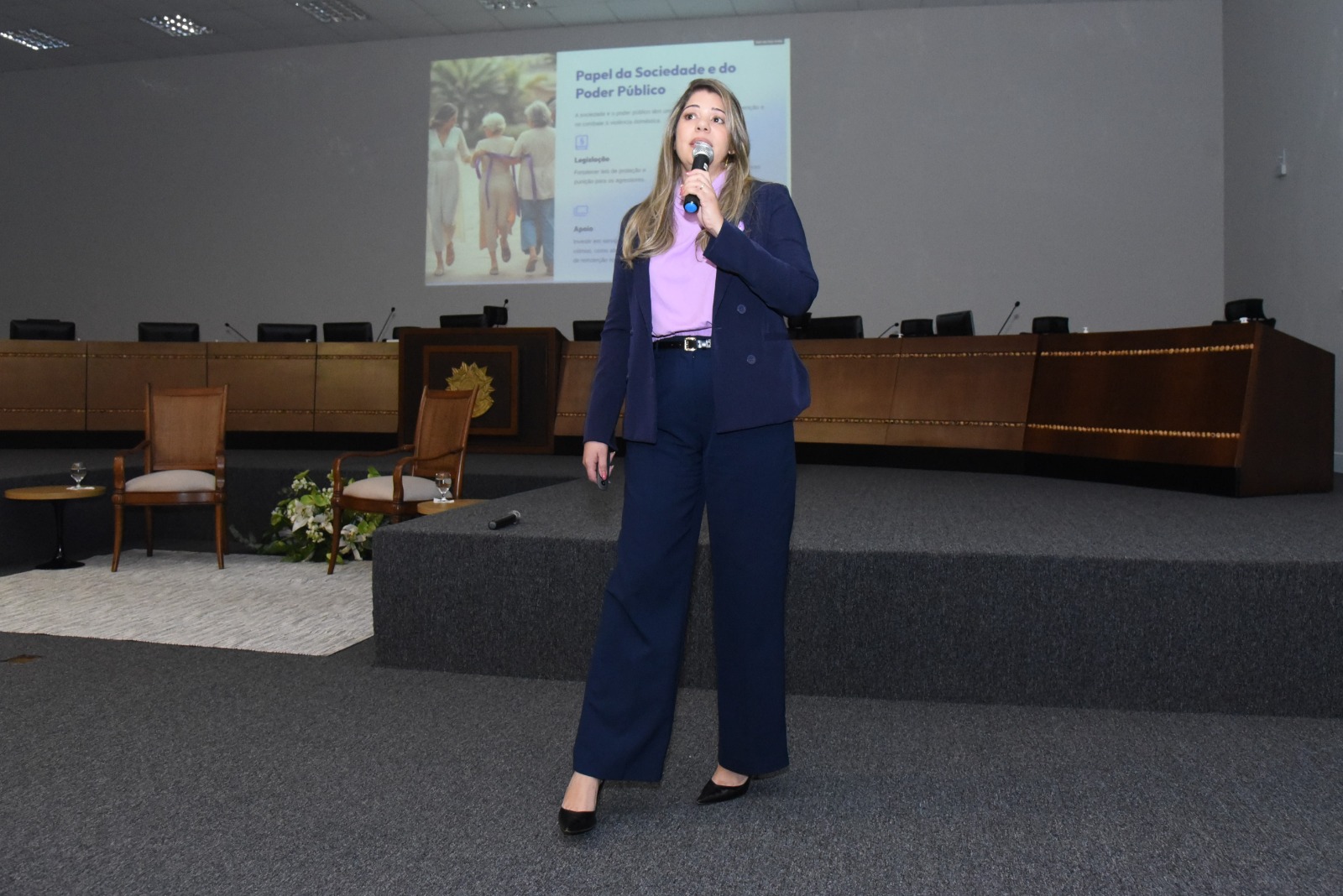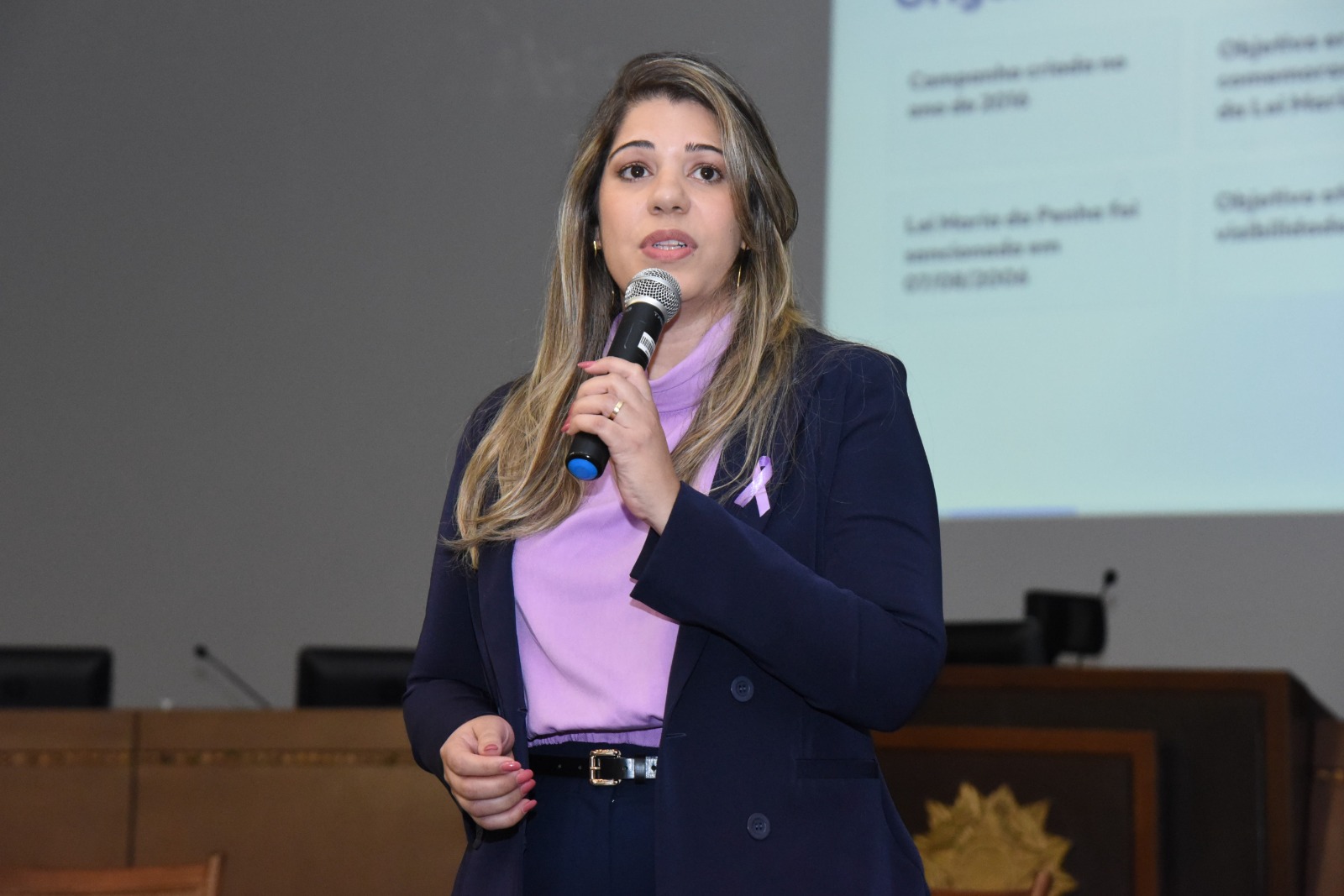 O evento iniciou com a palestra da juíza Louise Santana que apresentou os tipos de violência contra a mulher e a necessidade da denúncia que é crucial para proteger a vítima, para quebrar o ciclo de violência, para o agressor ser responsabilizado entre outros fatores destacando que a educação e a sensibilização da comunidade são essenciais para quebrar o ciclo de violência e promover uma cultura de respeito e igualdade.