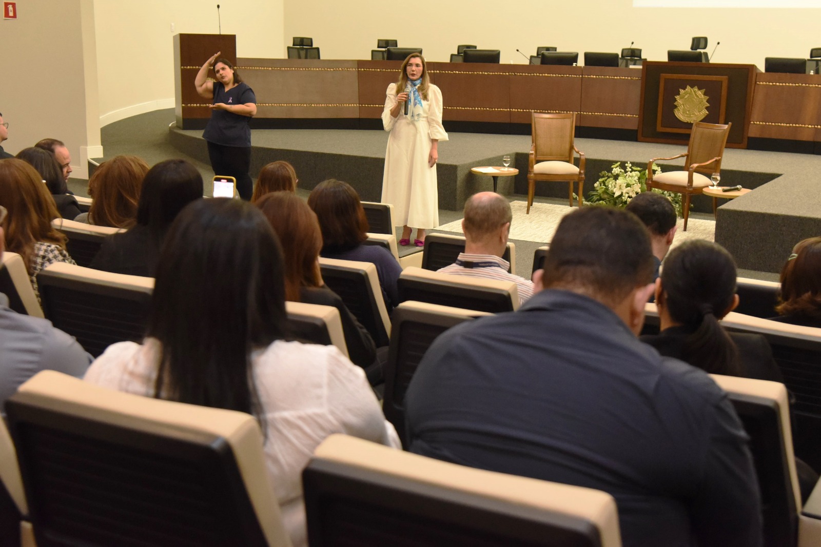 Após a palestra da magistrada do Poder Judiciário acreano, a Ouvidora da Mulher do TRE/AC também conversou com as participantes (os) salientando sobre o fortalecimento de leis e políticas públicas que pode oferecer suporte mais eficaz e garantir que as vítimas recebam a proteção necessária, além de falar da importância da Ouvidoria da Mulher.