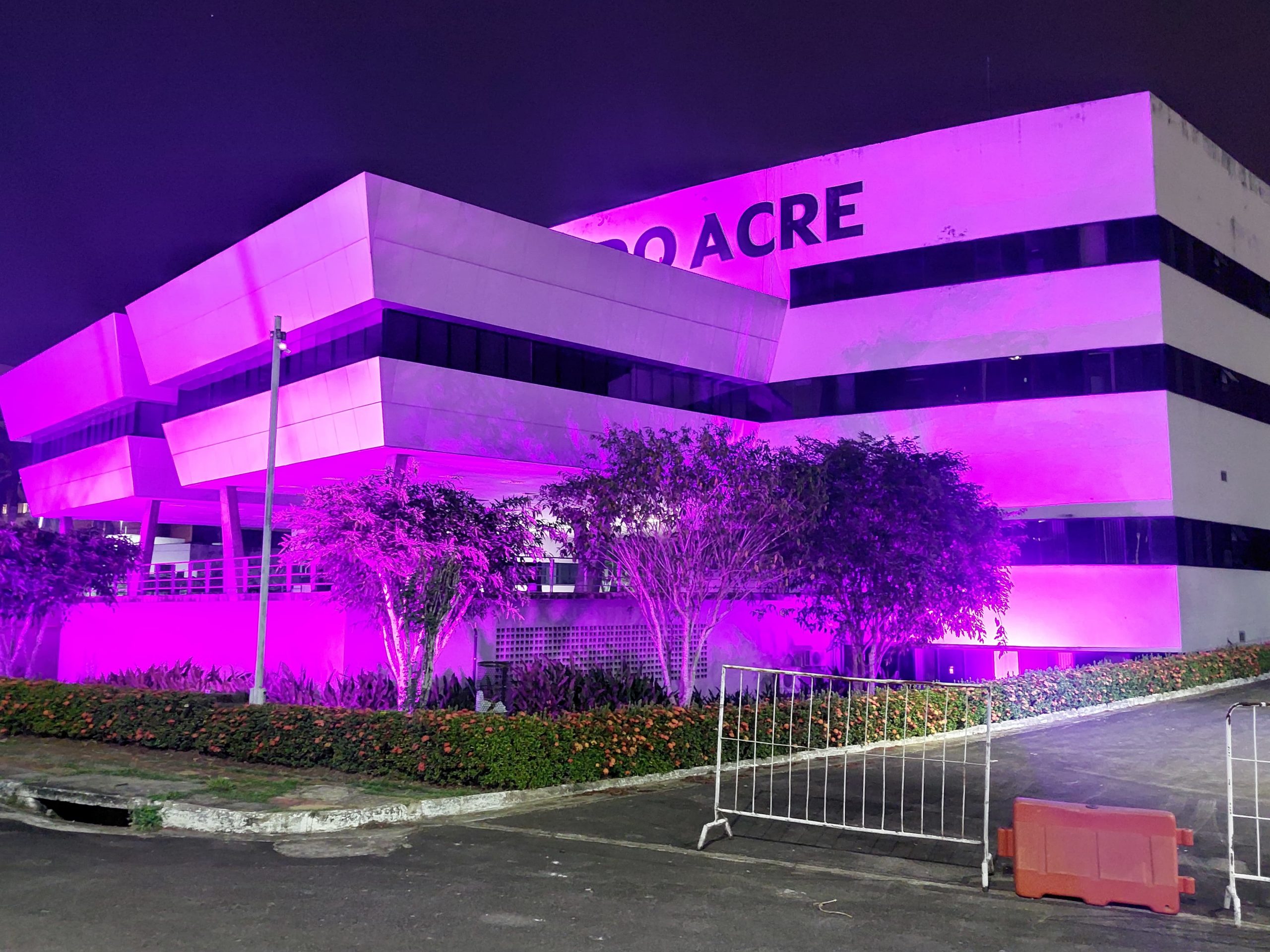 O edifício-sede do Tribunal de Justiça do Acre (TJAC) está iluminado de cor lilás em apoio à campanha de conscientização pelo fim da violência contra a mulher. A iniciativa é da Coordenadoria Estadual das Mulheres em Situação de Violência Doméstica e Familiar (Comsiv) do Judiciário acreano. O prédio ficará com essa iluminação durante todo o mês de agosto.