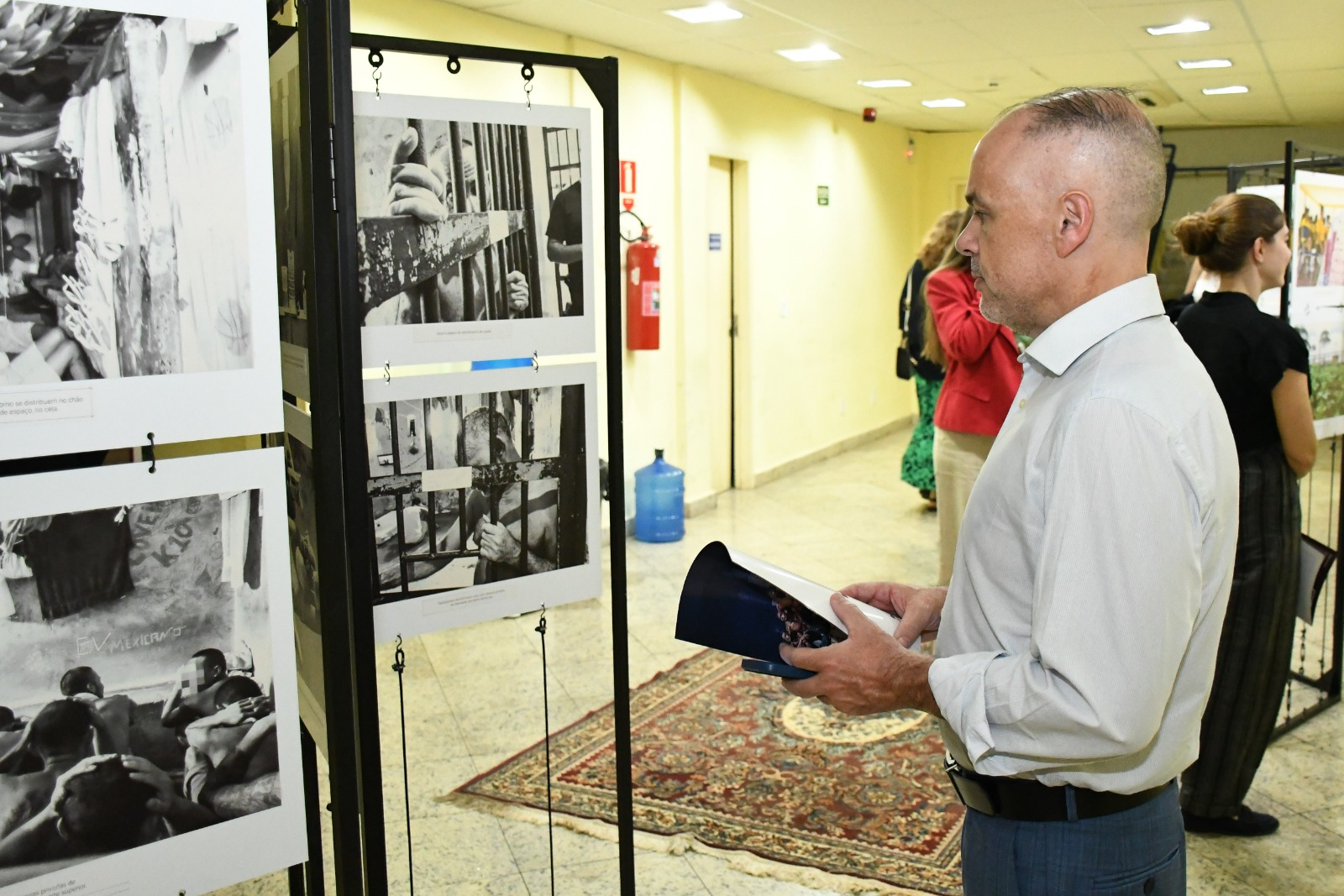O juiz-auxiliar da Presidência do Conselho Nacional de Justiça (CNJ) e coordenador do Departamento de Monitoramento e Fiscalização do Sistema Carcerário e do Sistema de Execução de Medidas Socioeducativas (DMF), desembargador Luís Geraldo Sant’Ana Lanfredi, também apreciou as imagens fotográficas e fez reflexões traçando um paralelo com o evento que estuda a temática.