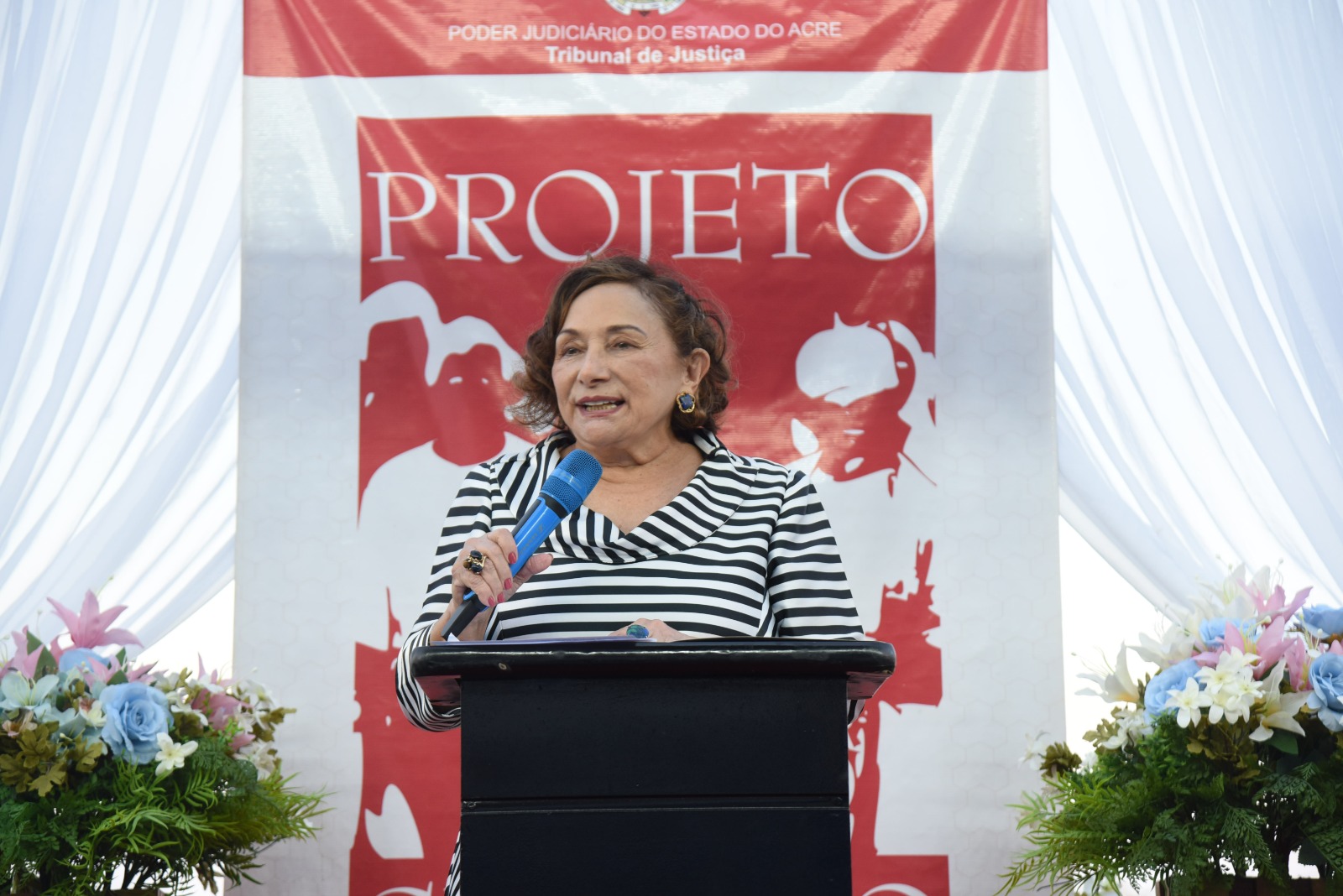 Representando a presidência do TJAC, a coordenadora do Projeto Cidadão, decana da Corte de Justiça, desembargadora Eva Evangelista falou sobre a grandeza do aspecto social do Projeto Cidadão, o mais importante e longevo ação social do Tribunal de Justiça do Acre (TJAC).