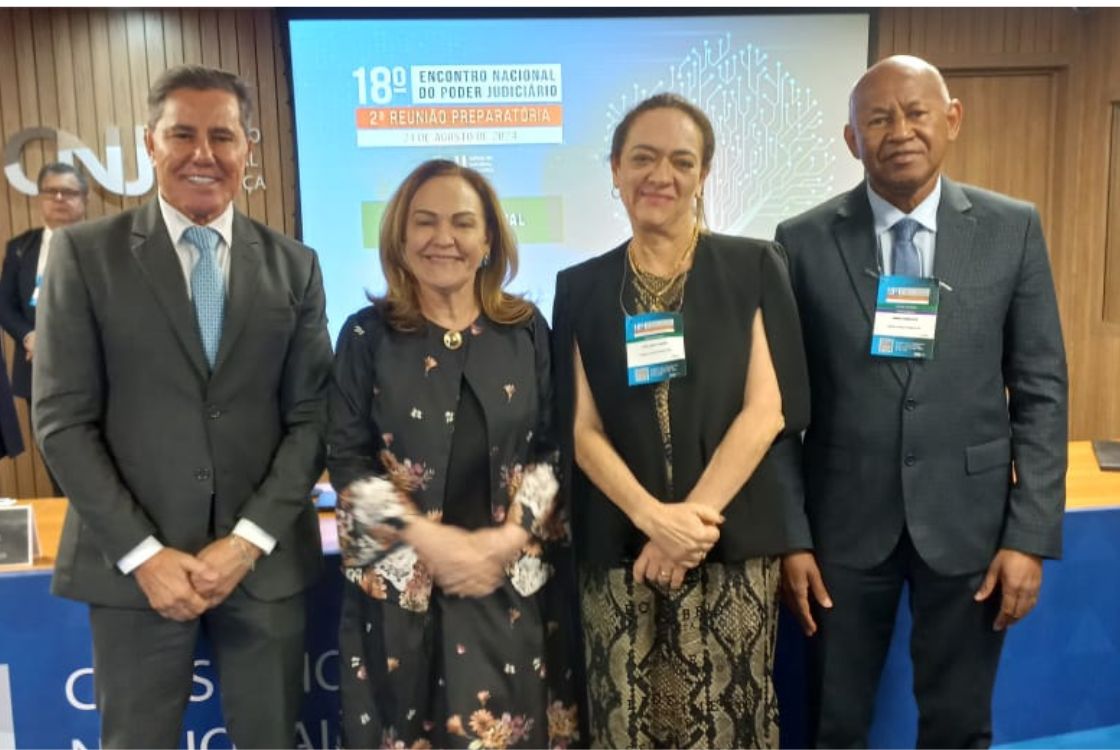 A desembargadora-presidente do TJAC; o corregedor-geral da Justiça, desembargador Samoel Evangelista e a juíza-auxiliar da Presidência, Zenice Mota são os representantes do Poder Judiciário do Acre no evento. Na foto abaixo estão ao lado do conselheiro Jose Edivaldo Rocha Rotondano.