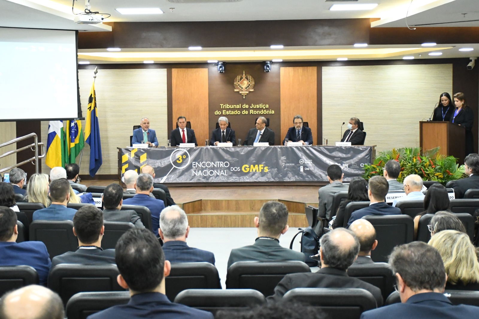Na quinta-feira, a abertura oficial contou com a presença do conselheiro do Conselho Nacional de Justiça (CNJ) e Supervisor do Departamento de Monitoramento e Fiscalização do Sistema Carcerário e do Sistema de Execução de Medidas Socioeducativas (DMF), desembargador José Edivaldo Rocha Rotondano, o juiz Auxiliar da Presidência do CNJ e Coordenador do DMF – Desembargador Luís Geraldo Sant’Ana Lanfredi, o presidente do TJ de Rondônia, desembargador Raduan Miguel Filho, e demais membros da administração do Poder Judiciário rondoniense.
