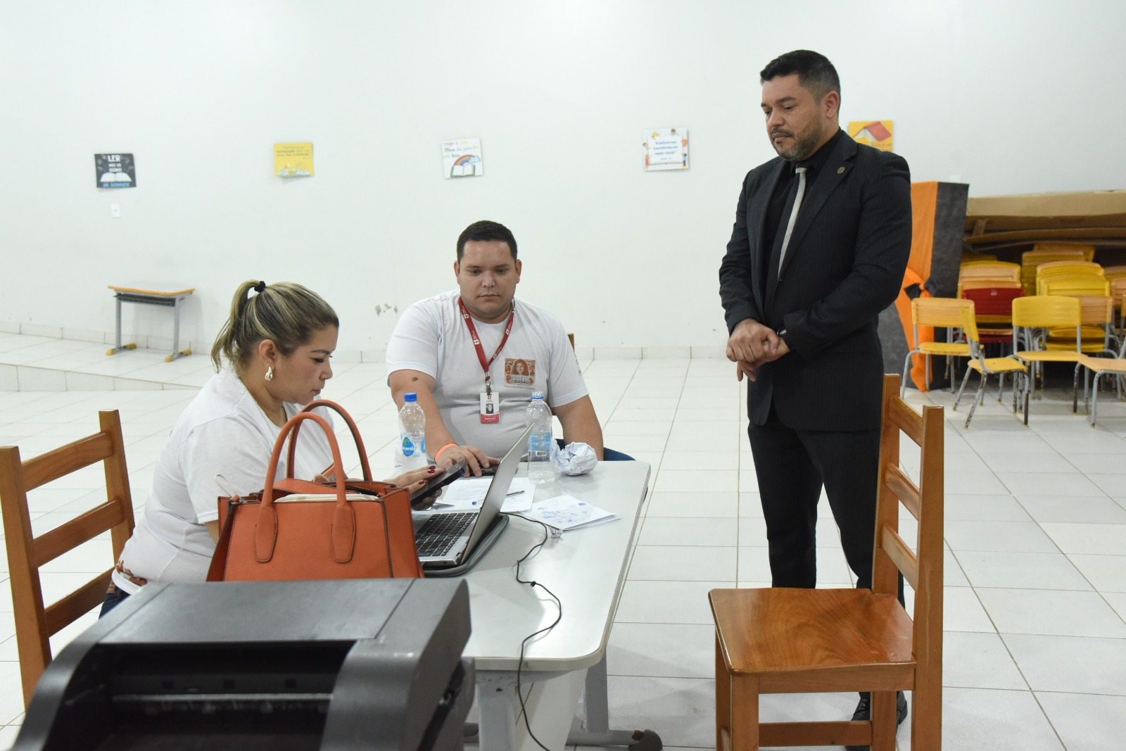 A juíza de Direito Carolina Lagos, da Vara Cível, e o juiz de Direito Robson Shelton, da Vara Criminal, ambos da Comarca de Feijó, visitaram a escola onde conversaram com os servidores e a população que buscava por atendimento. Para eles, ações como a do Projeto Cidadão são fundamentais para garantir a justiça social.