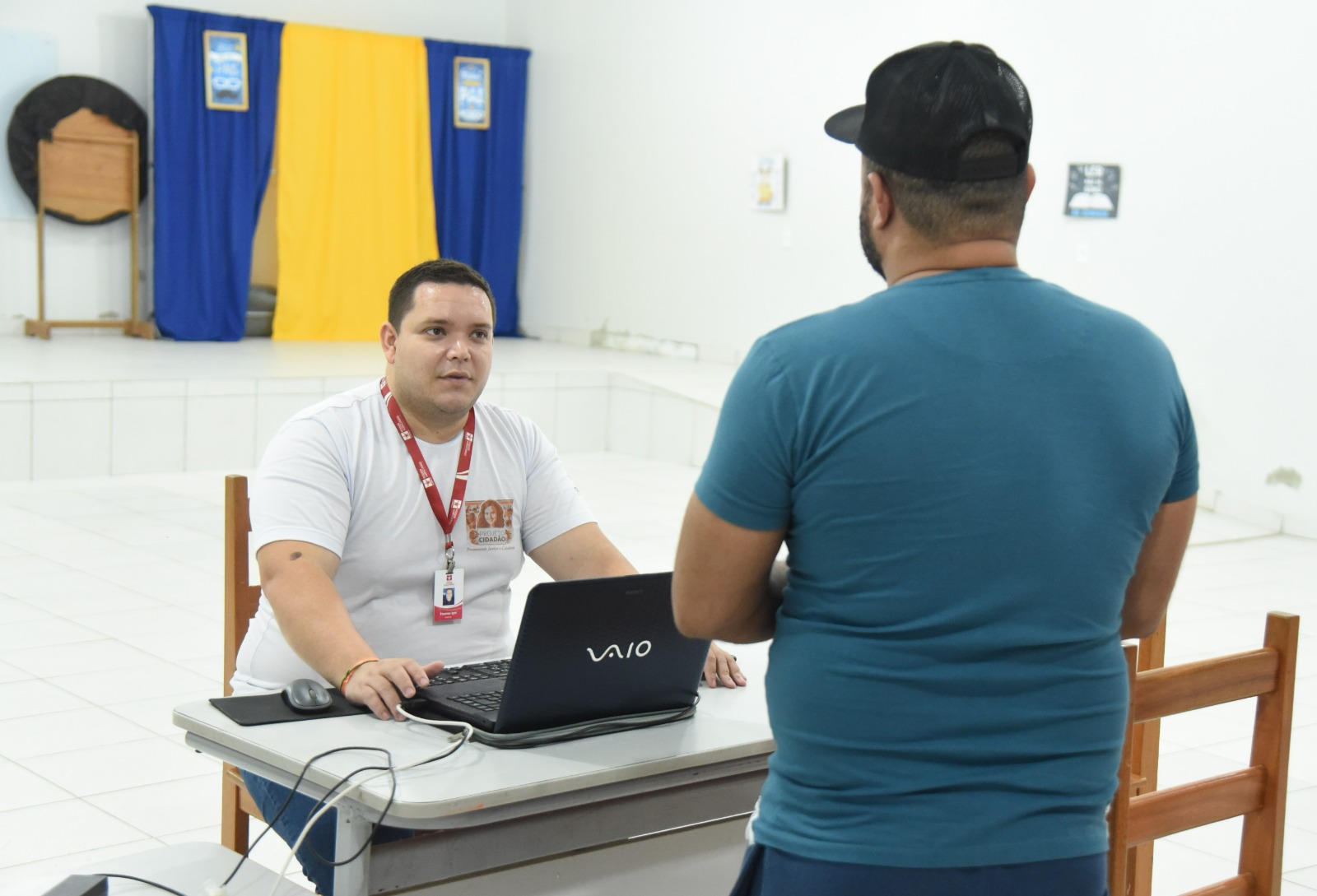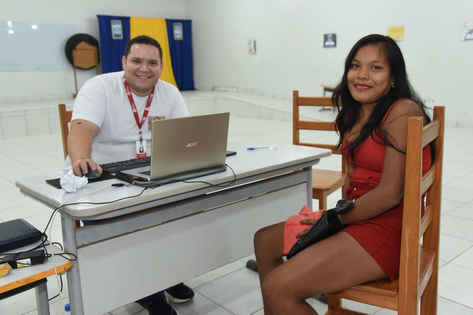 A jovem Ana Clara Kaxinawá, 17 anos, esteve na ação com a família. Ela buscava retirar o CPF e foi atendida pelo servidor do Tribunal de Justiça do Acre, Thomas Machado, que estava auxiliando nesse serviço via sistema da Receita Federal.