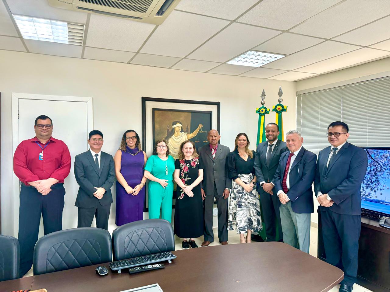 A presidente do Tribunal de Justiça do Acre (TJAC), desembargadora Regina Ferrari, juntamente com o corregedor-geral da Justiça, desembargador Samoel Evangelista, a desembargadora Denise Bonfim e o desembargador Francisco Djalma recepcionaram a comitiva do Tribunal de Justiça de Roraima (TJRR) nesta quinta-feira, 15. A visita técnica teve como pauta principal o Sistema Extrajud.
