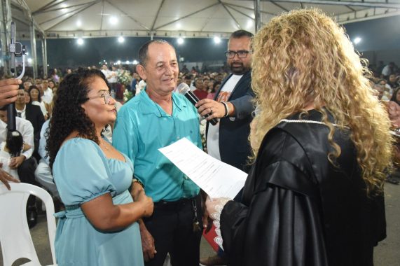 Conduzida pela juíza de Direito Luana Campos, a cerimônia contou com a presença de autoridades locais, membros da comunidade e familiares dos noivos criando um ambiente festivo e acolhedor para todos os participantes.