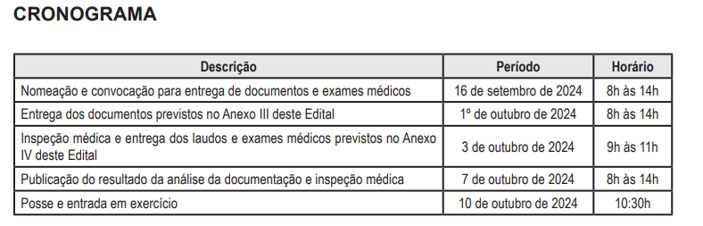 A fase seguinte consiste na entrega de exames médicos e laudos à Junta Médica do Poder Judiciário. A inspeção está prevista para o dia 3 de outubro. É importante ressaltar que a data de emissão desses não pode ser anterior a 180 dias.