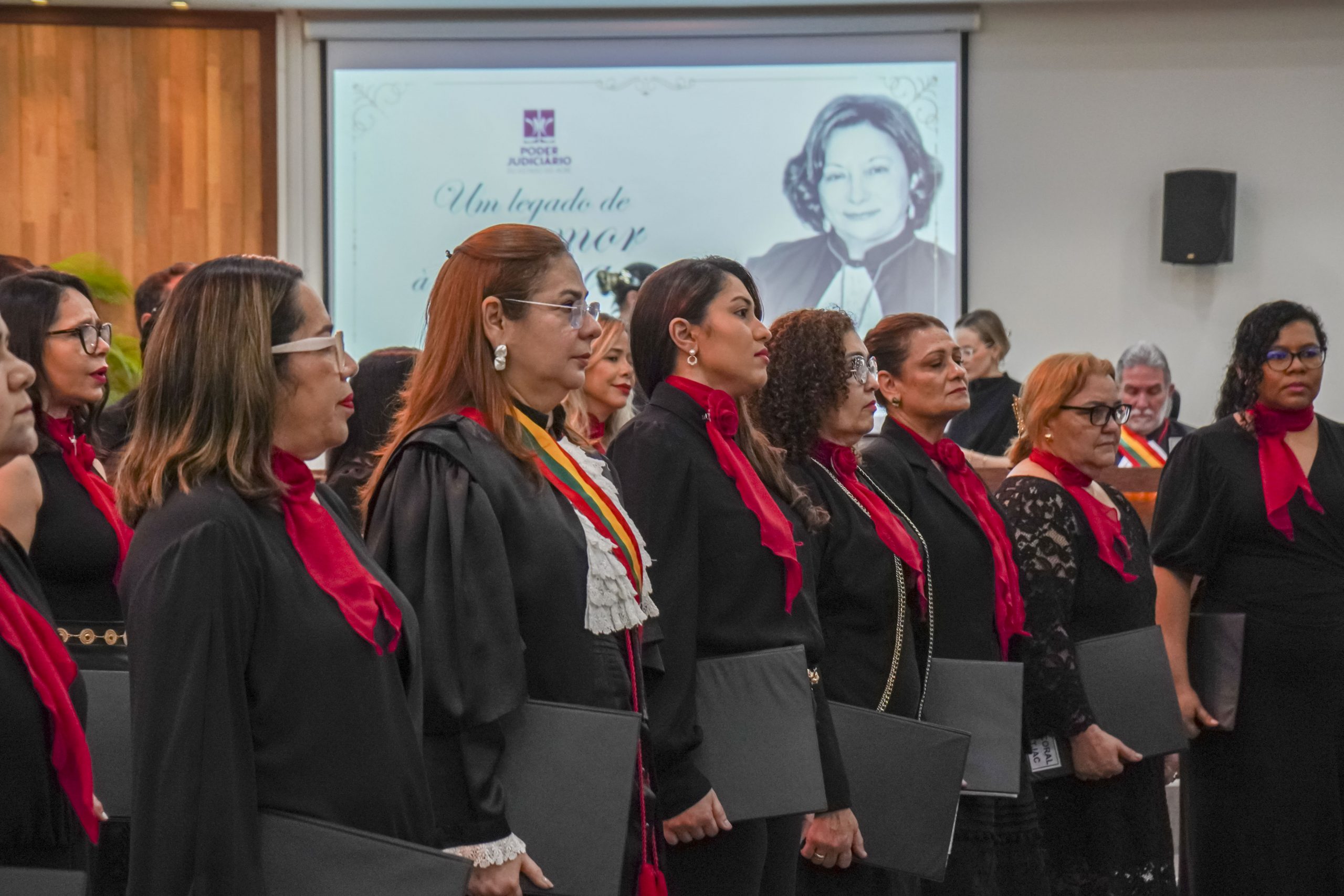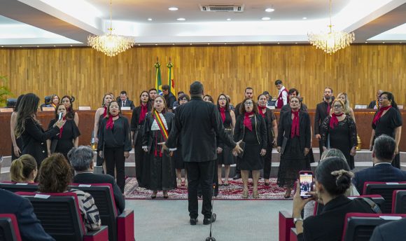 Após a abertura feita pela desembargadora-presidente, Regina Ferrari, as homenagens tiveram início com uma apresentação do Coral Cancioneiros da Paz, do TJAC, que entoou as canções “Agnus Dei” (David Quinlan) e “Céu de Santo Amaro” (Flávio Venturini). O coral é formado por magistrados (as), servidores (as) e colaboradores (as) do Poder Judiciário.