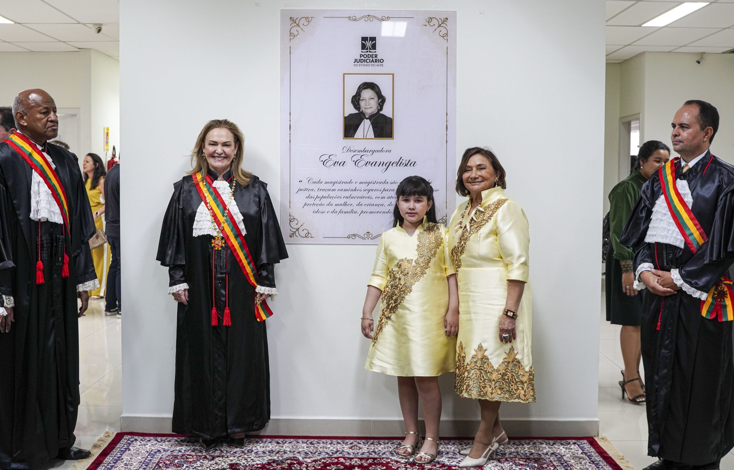 Por sua vez, o governador do Estado, Gladson Cameli, externou que palavras não são suficientes para demonstrar a gratidão dos acreanos pela trajetória exemplar da desembargadora Eva Evangelista no exercício da magistratura, do serviço público e, notavelmente, na luta pelos direitos dos cidadãos.