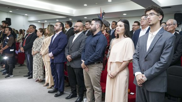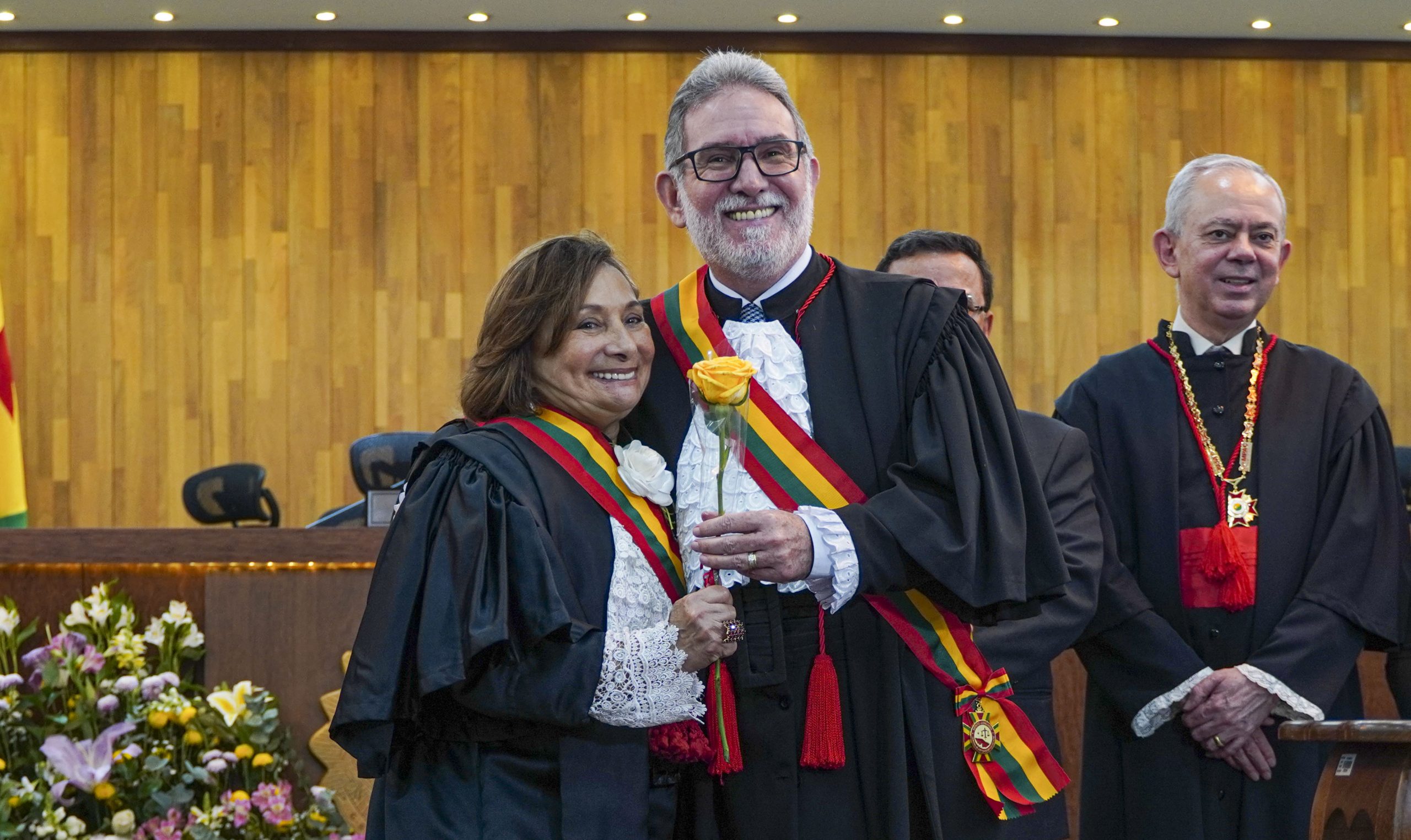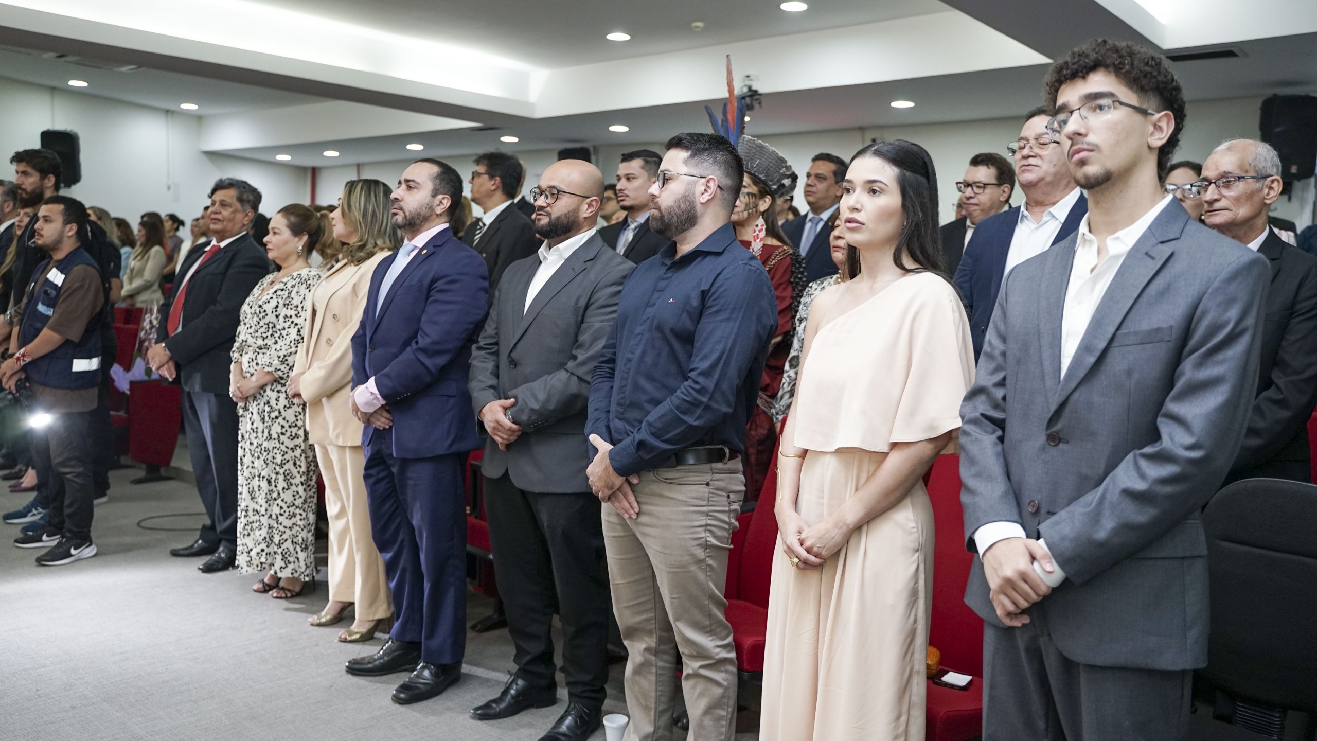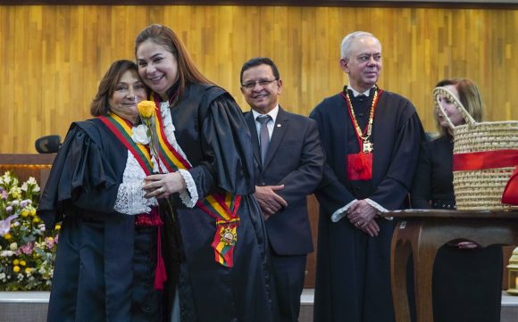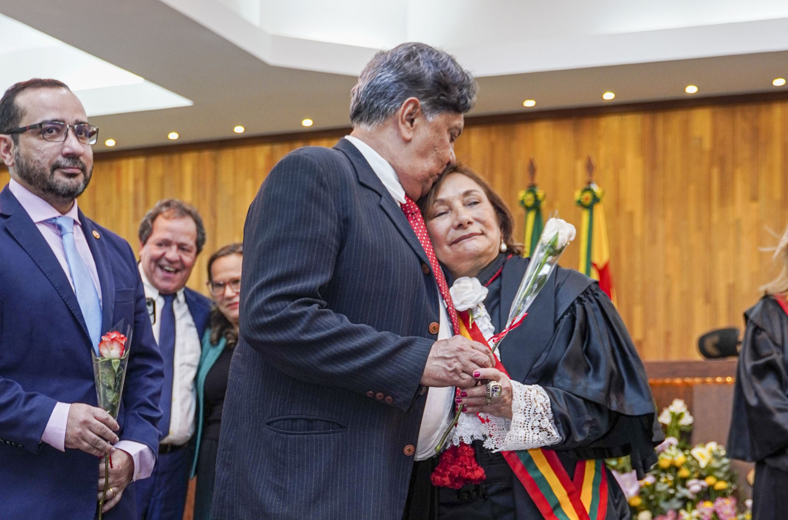 A sessão solene, conduzida pela desembargadora-presidente Regina Ferrari, contou com a presença das desembargadoras Denise Bonfim, Waldirene Cordeiro, bem como dos desembargadores Luís Camolez (vice-presidente do TJAC), Samoel Evangelista (corregedor-geral da Justiça), Júnior Alberto, Laudivon Nogueira e Nonato Maia, além da vice-presidente do Tribunal Regional do Trabalho da 14ª Região (TRT14), desembargadora do trabalho Maria Cesarineide (convidada de honra).