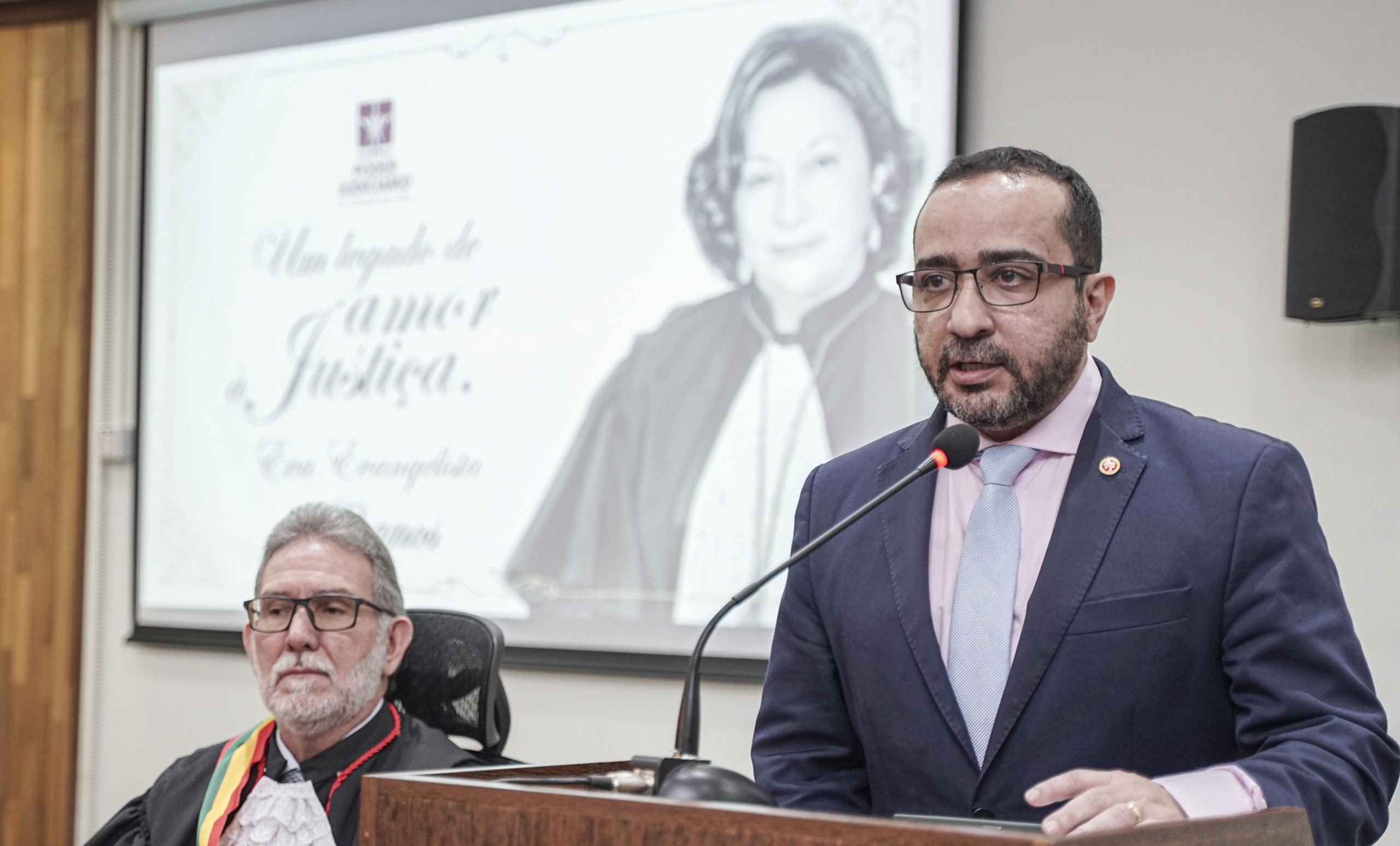 “Hoje é um dia festivo, muito festivo, mas não posso negar que há um toque de nostalgia. Celebramos o encerramento de uma trajetória profissional exemplar, construída com dedicação, integridade e profundo compromisso com a Justiça. É uma grande honra dizer que não apenas aprendi sobre sua tutela, mas convivi ao seu lado na magistratura. Sempre me impressionou sua habilidade de ouvir. A desembargadora Eva Evangelista sempre demonstrou essa habilidade com maestria. Sua trajetória é um exemplo claro de dedicação até o último dia de trabalho. Esse amor pela justiça foi a força motriz que a manteve firme. Em cada decisão, projeto, estava seu compromisso inabalável com a defesa da Justiça. Sua jornada é um farol que continuará a iluminar nossos caminhos. O exemplo que nos deixa é de uma magistrada completa, que não aplica só a lei mas vive de maneira intensa priorizando sempre o bem comum”, assinalou o desembargador.