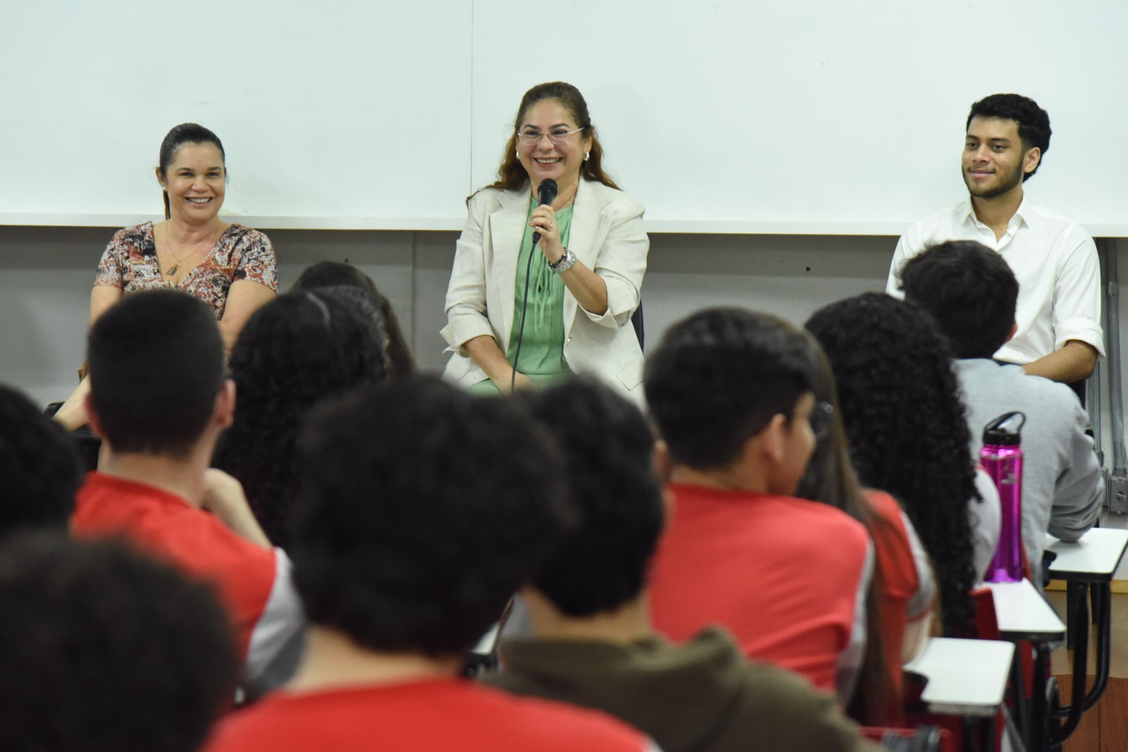 Desembargadora Waldirene Cordeiro e desembargador Nonato Maia foram à escola Meta nesta segunda-feira, 16, conversar com estudantes onde enfatizaram o papel social do Judiciário com a construção de uma sociedade mais justa e fraterna