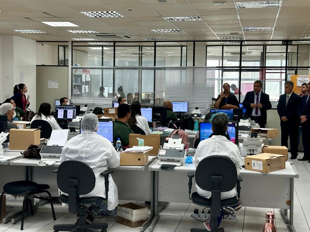 Ainda na sede da Emes, o desembargador Elcio Mendes visitou o setor onde é feita a digitalização de processos judiciais, que lhe impressionou por um detalhe: é todo realizado por pessoas com deficiência. Ou seja, assume dupla relevância, inclusão/acessibilidade e profissionalismo, diretrizes da Esjud.