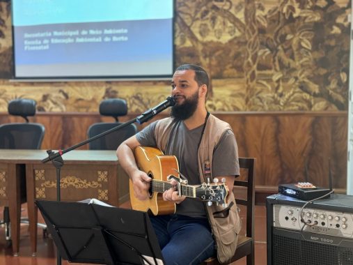 A atividade foi abrilhantada com a participação de Deivid Menezes, que tocou e cantou sobre o tema da oficina. Uma das músicas, “Lixo no Lixo” (do Falamansa), traz versos tão atuais, quanto necessários: