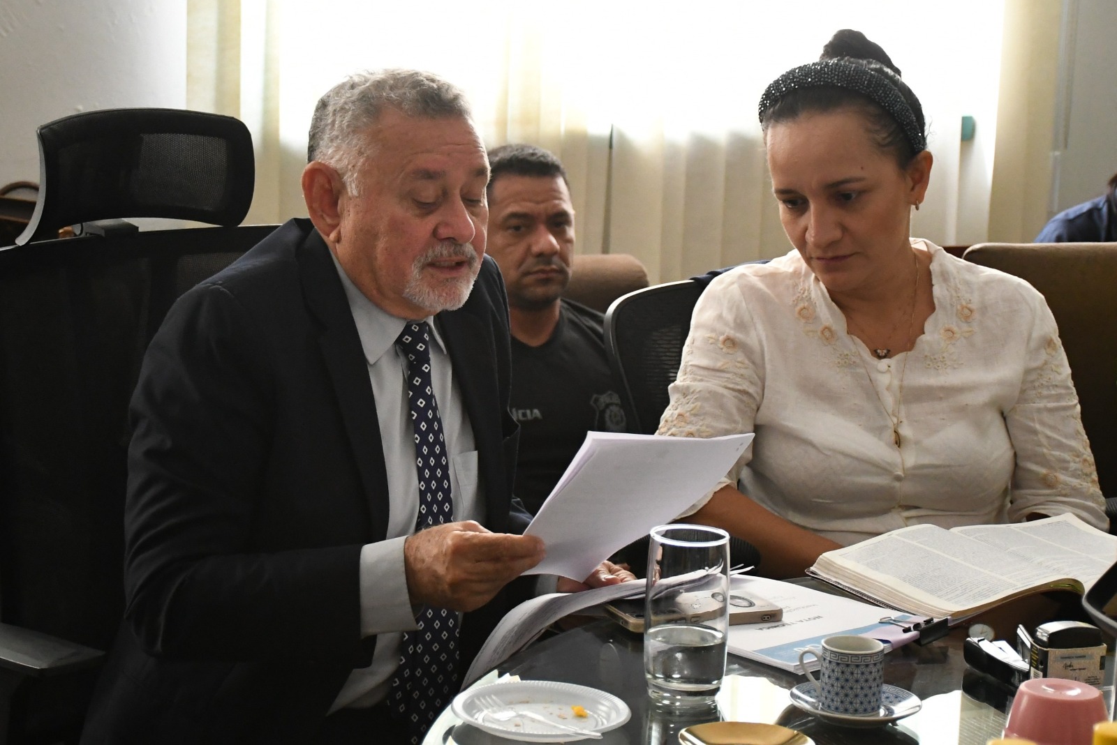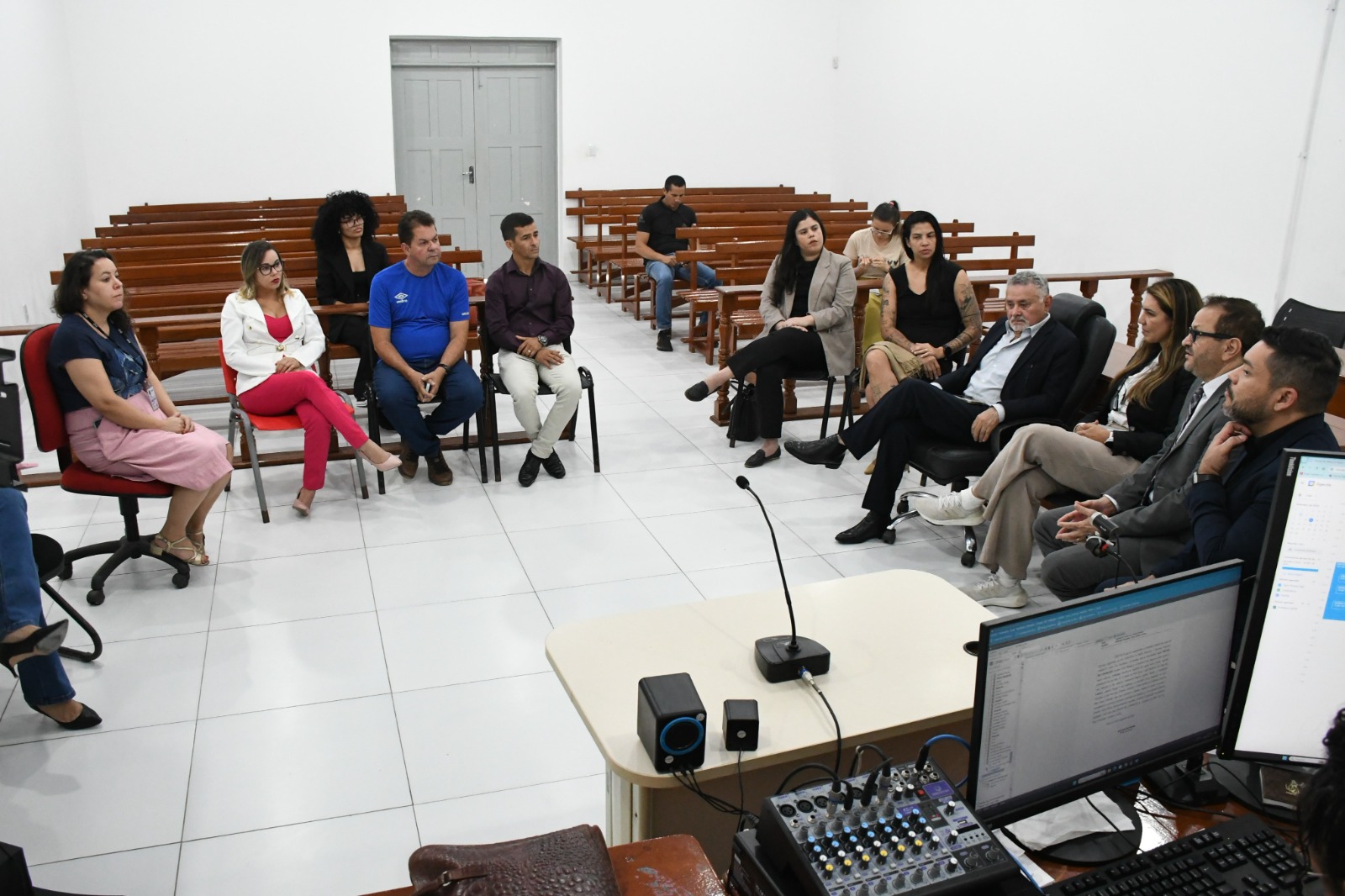 Na quarta-feira, 11, o Fórum Quirino Lucas de Moura sediou reunião com a presença do prefeito Kiefer Cavalcante, os juízes da Comarca de Feijó, Robson Shelton (Titular da Vara Criminal) e Caroline Lagos (Titular da Vara Cível), a promotora de Justiça Bianca Bernardes de Moraes, e demais representantes de instituições municipais.