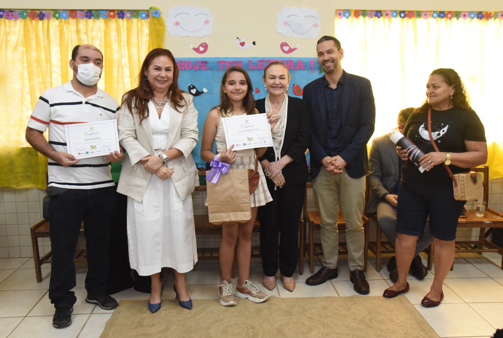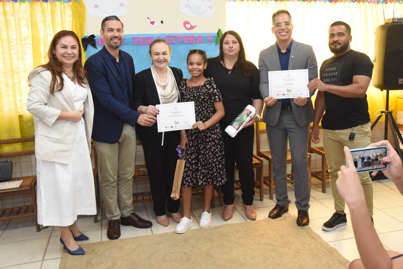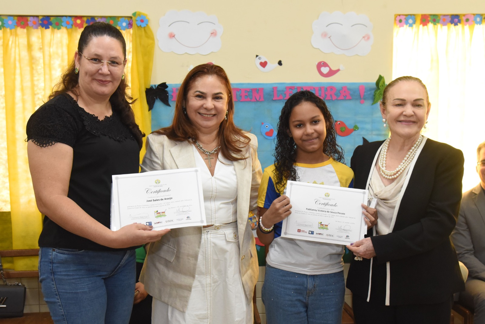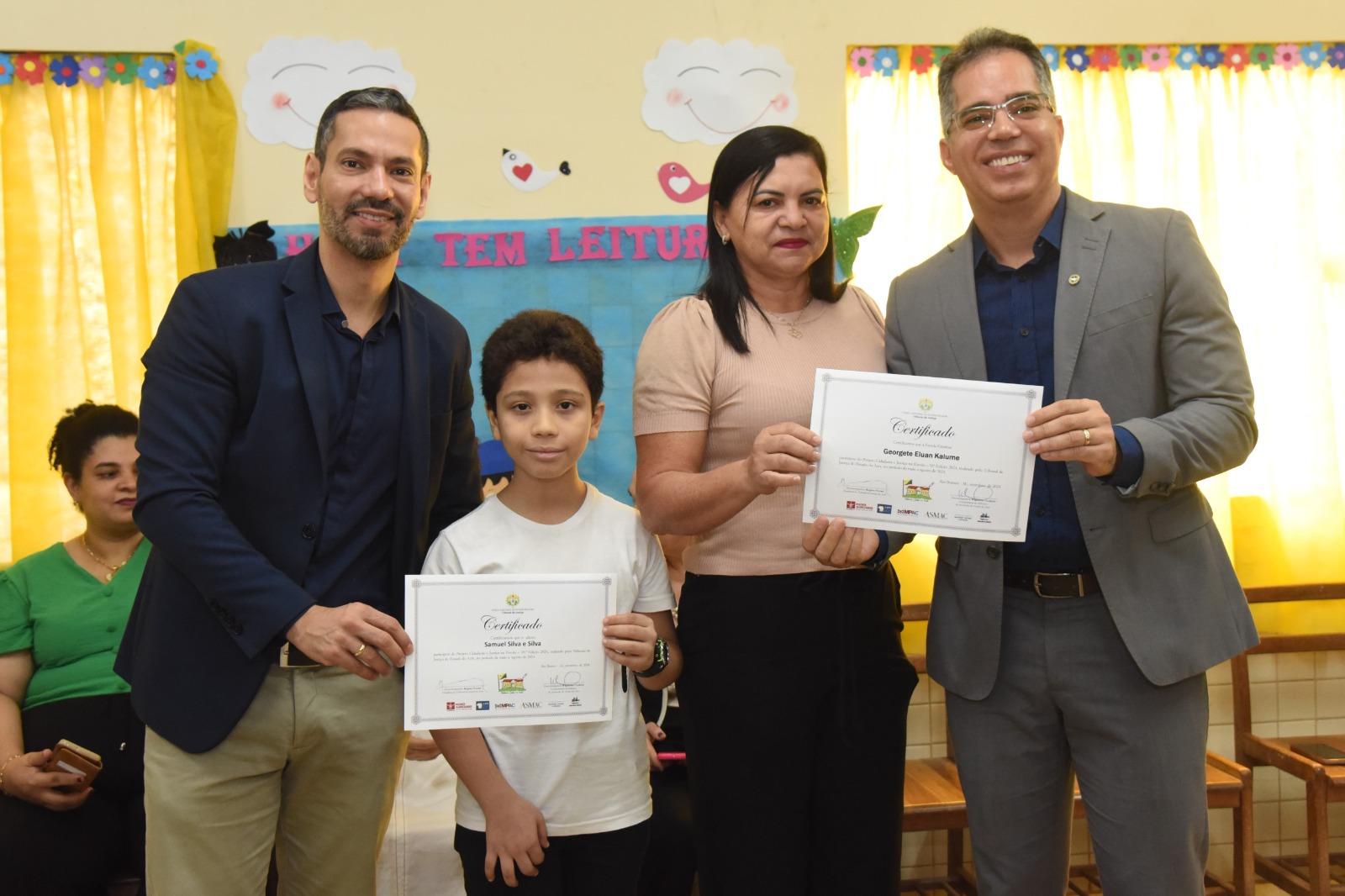 Estavam no dispositivo de honra da cerimônia de encerramento as desembargadoras Regina Ferrari (presidente do TJAC) e Waldirene Cordeiro (coordenadora da CIJ), o juiz de Direito Gilberto Matos (presidente da Asmac), o defensor público Celso Araújo e a diretora da Escola José Potyguara, Denise de Souza. Todas e todos conversaram com as crianças presentes sobre a importância de se dedicarem aos estudos, além de alertarem para necessidade de transformação das práticas, especialmente, nossas condutas em relação ao meio ambiente, para que tenhamos um futuro melhor.